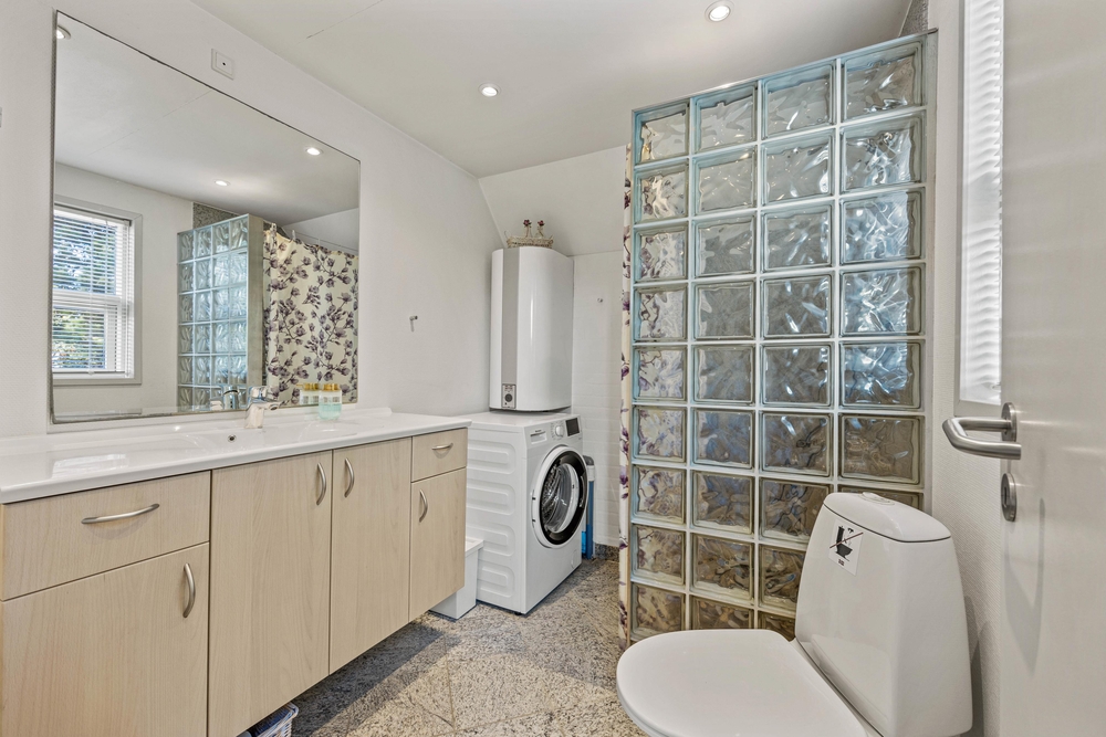 Im Erdgeschoss befinden sich außerdem ein Schlafzimmer mit zwei Einzelbetten und ein Badezimmer mit Fußbodenheizung und Dusche, sowie eine Waschmaschine.