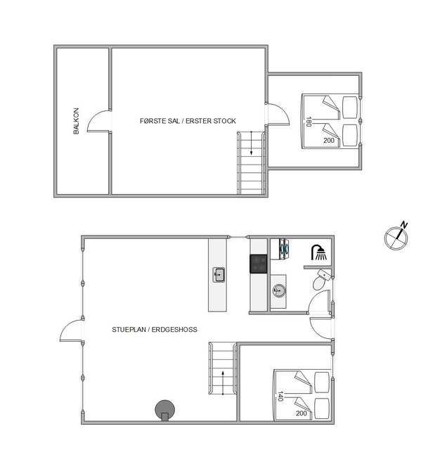 Im ersten Stock befindet sich ein Schlafzimmer mit einem 180x200cm großen Doppelbett. Außerdem gibt es ein großes, gemütliches Wohnzimmer mit Zugang zu einem angenehmen Südwestbalkon, von dem aus ihr die Aussicht genießen könnt, wenn die Sonne langsam untergeht und den Himmel in Pastellfarben färbt.