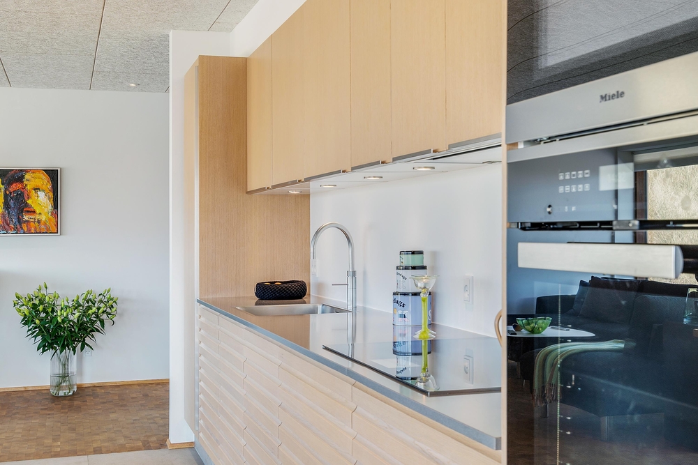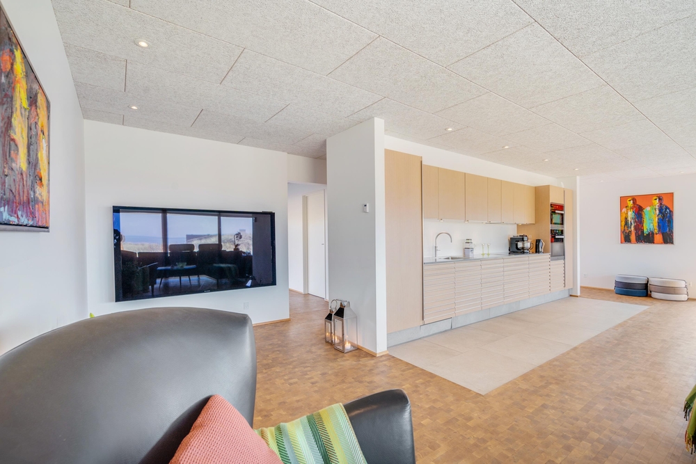 Der durch die große Fensterfront helle und freundliche Wohnbereich ist ebenfalls sehr geschmackvoll und durchdacht eingerichtet. In der offenen und wohnlichen Küche lässt es sich gut leckere Gerichte zubereiten ? der große Essbereich lädt zu vielen, gemütlichen Mahlzeiten ein ? und dann mit diesem herrlichen Ausblick!