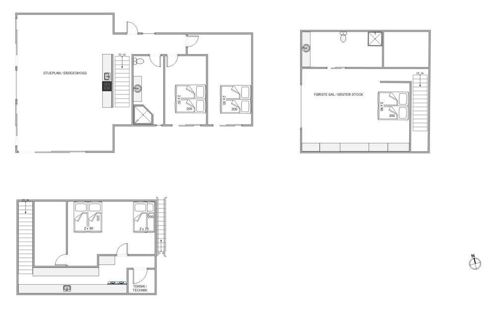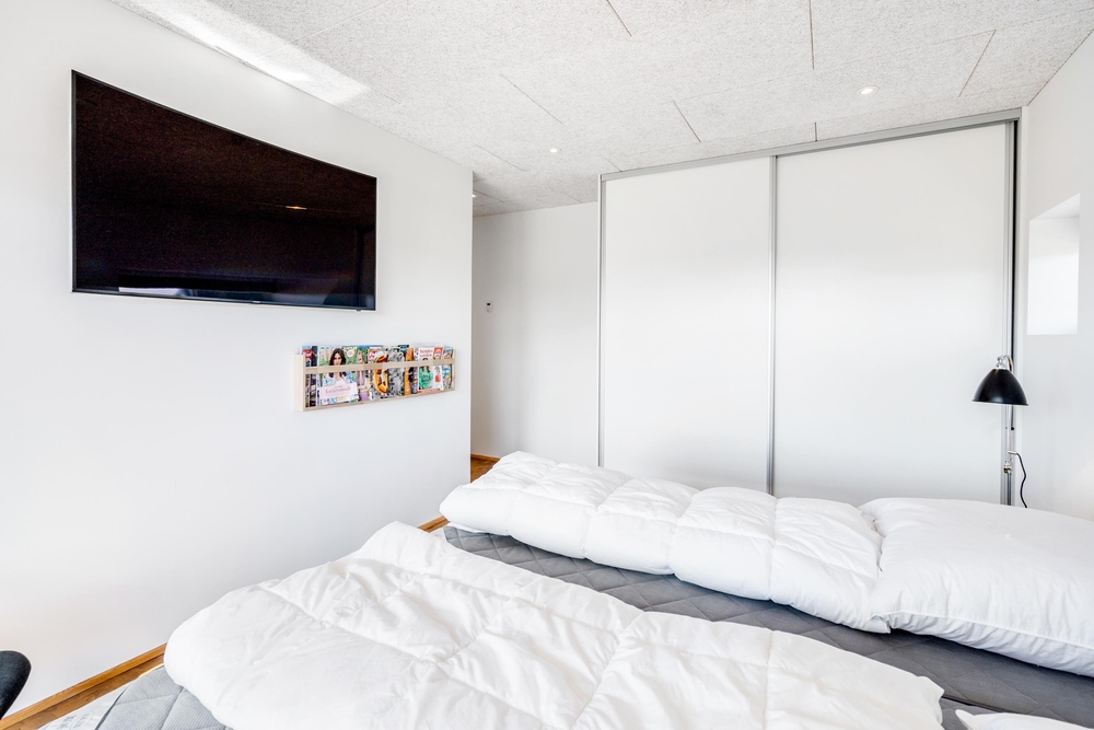 Alle der insgesamt 3 Schlafzimmer sind mit bequemen Doppelbetten ausgestattet und versprechen traumhafte Nächte. Ein Zimmer im Keller ist eingerichtet wie ein Familienraum, mit dobbeltbett und Etagebetten, mit Fernseher.