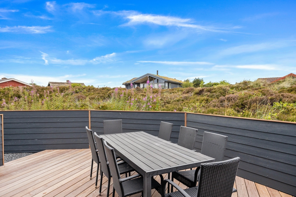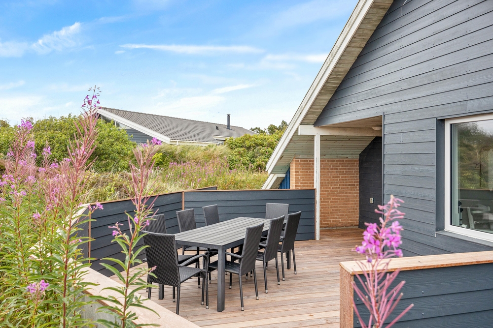 Das Ferienhaus am Kløvervej 9 in Henne befindet sich auf einem 1.600 Quadratmeter großen Naturgrundstück: hier im Außenbereich des Ferienhauses können sowohl Jung und Alt die sonnigen Tage des Urlaubs verbringen. Für die Kinder gibt es eine Schaukel, und während sie schaukeln, könnt Ihr einen guten Platz auf der Terrasse finden und euch in den Gartenmöbeln und Sonnenliegen zurücklehnen.