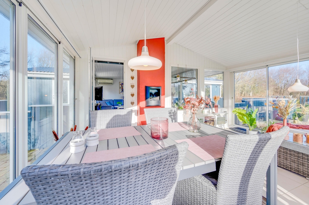 Vielleicht versammelt ihr euch hier zu einem lustigen Spieleabend, schaut euch einen spannenden Film auf dem Flachbildfernseher an oder macht es euch einfach auf dem Sofa bequem und genießt die wohlige Wärme des Holzofens. Außerdem ist das Häuschen mit einem schönen Wintergarten ausgestattet, in dem ihr am Abend oder an den etwas kühleren Ferientagen sicher viele schöne gemeinsame Stunden verbringen könnt. Auch die Kinder könnt ihr von hier aus problemlos im Auge behalten, während sie im Garten spielen oder eine rasante Schaukelfahrt unternehmen.