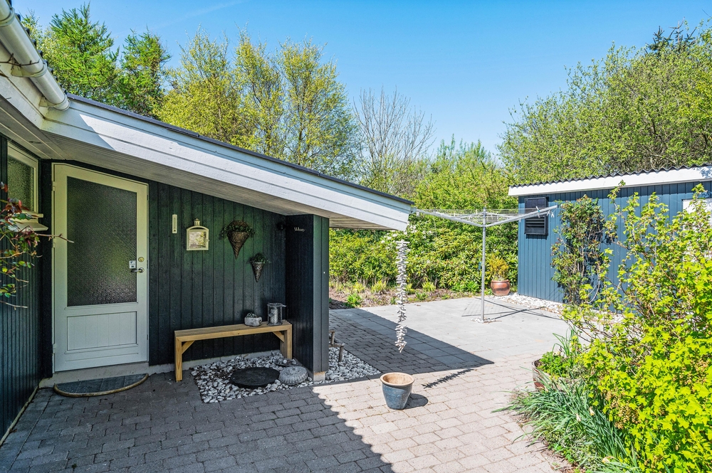 Die Terrasse des Ferienhauses bietet viele entspannte Stunden an lauen Sommerabenden. Die Terrasse ist so gestaltet, dass ihr bei jedem Wetter die Möglichkeit habt, euch hier aufzuhalten. Nach einem flotten Spaziergang in der Umgebung könnt ihr gemeinsam auf dem zum Ferienhaus gehörenden Grill ein leckeres Abendessen zubereiten und dabei ein kühles Getränk und die sonnigen Stunden in eurem Urlaub genießen. Das Grundstück des Ferienhauses ist von Bäumen und Sträuchern umgeben und bietet Schutz vor unerwünschten Blicken.