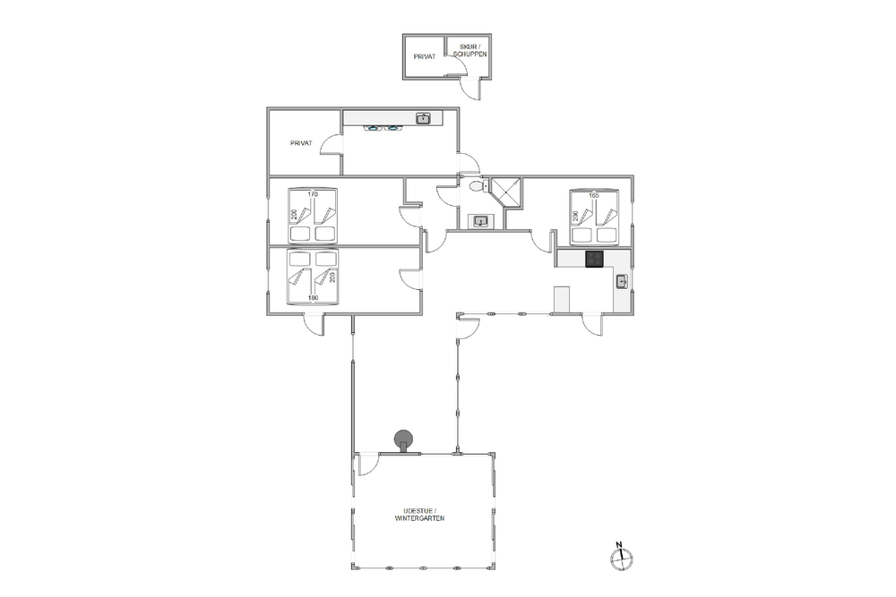 Das Ferienhaus verfügt über 3 Schlafzimmer, die in 3 Doppelzimmer aufgeteilt sind. Die Zimmer sind hell und einladend und bieten eine gemütliche Einrichtung. Morgens müsst ihr beim Toilettengang keine kalten Füße befürchten, denn das Badezimmer des Ferienhauses ist mit einer Fußbodenheizung ausgestattet.
