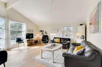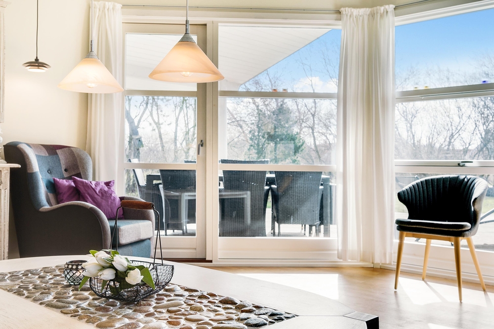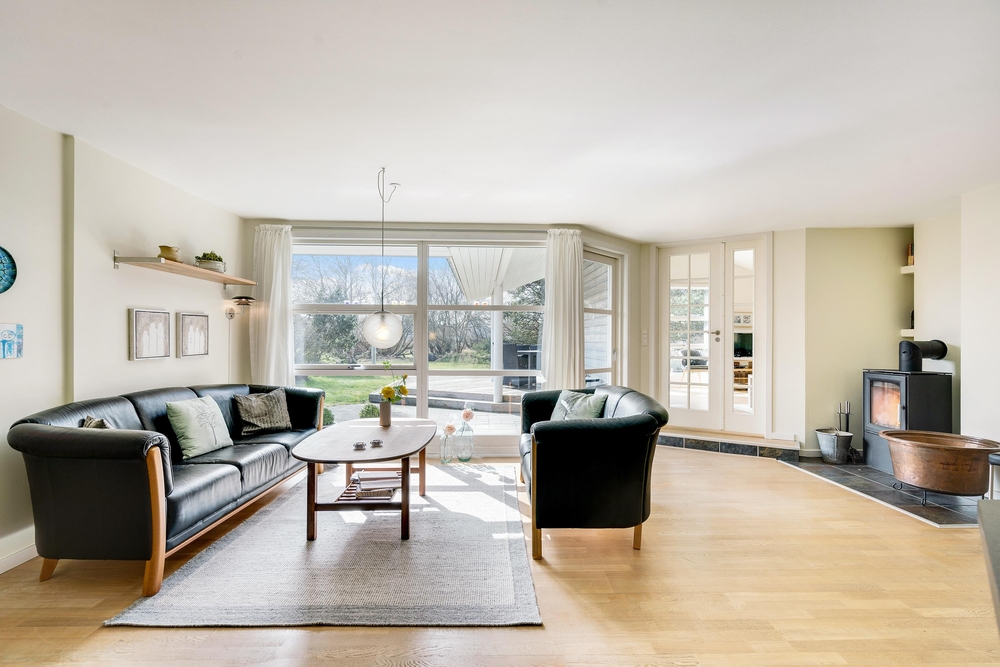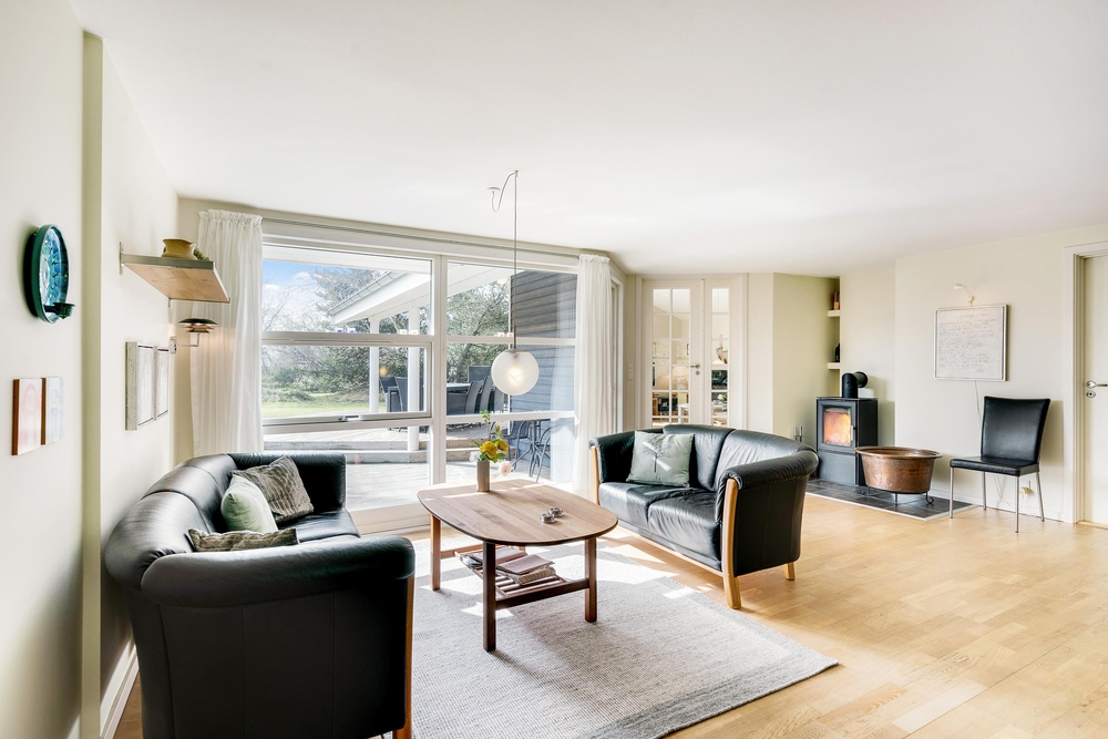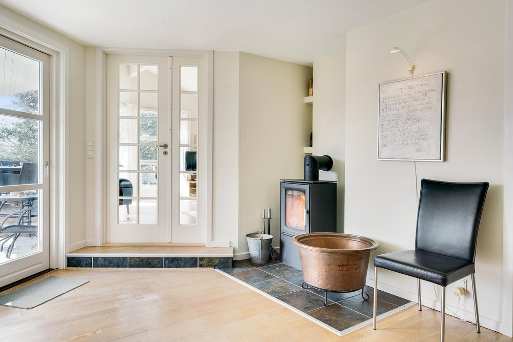 An kühleren Tagen verbreitet der knisternde Kaminofen eine wohlige Wärme. Macht es euch alle gemeinsam im Wohnraum gemütlich, während Draussen vor den grossen Panoramafenstern der rauhe Westwind die Baumkronen zerzaust.