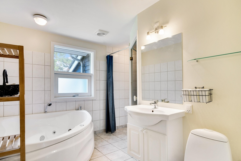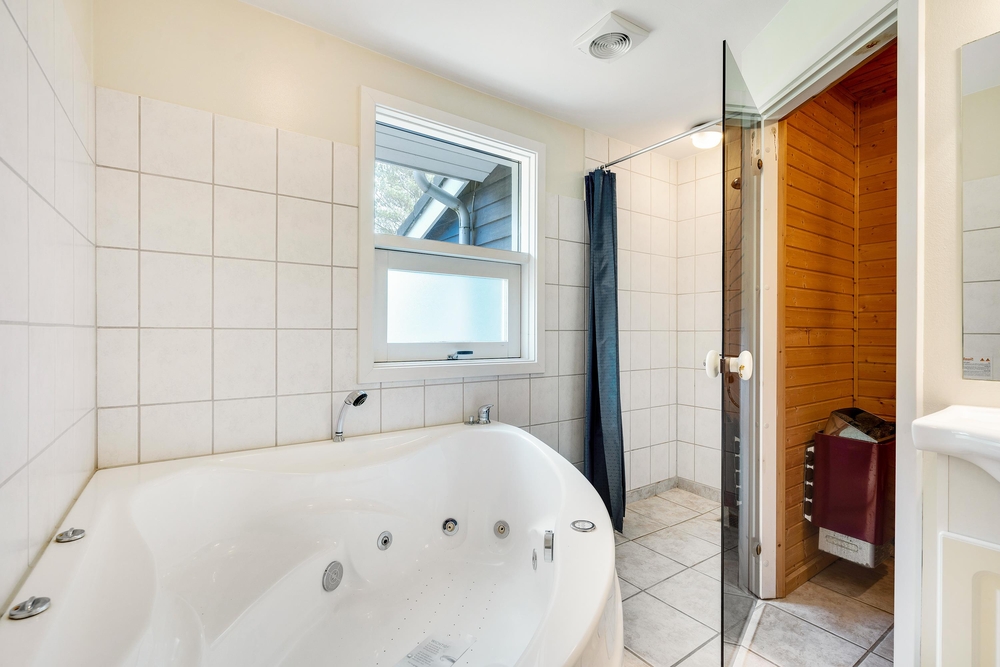 Das Haus ist mit einer energiesparenden Wärmepumpe ausgestattet, die beiden Badezimmer mit Fussbodenheizung. Das grössere der beiden Badezimmer verfügt über einen Whirlpool und eine hauseigene Sauna. Nach einem langen Tag an der frischen Nordseeluft wärmt ihr euch im Whirlpool auf. Rundet die Wellnessbehandlung mit einem wohltuenden Saunagang ab.