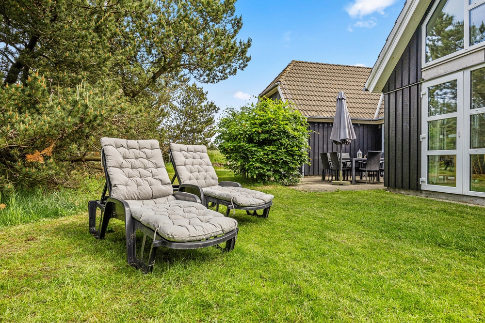 Nicht nur im Inneren des Ferienhauses in Kollemarken 61, sondern auch im Außenbereich könnt ihr viele schöne Stunden mit der Familie verbringen. Das Grundstück ist durch Bäume und Büsche vor den Blicken anderer Urlaubsgäste geschützt, so dass ihr es euch auf der abgeschirmten Terrasse gemütlich machen könnt. Nimmt den neueste Krimi mit auf die Sonnenliege und genießt die freie Zeit im Urlaub.