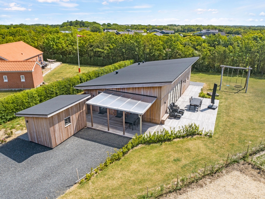Auf einem absolut ruhig gelegenem Grundstück, ganz am Ende der Straße, auf Kornblomstvænget 30 liegt dieses moderne und in 2021 neu gebaute Ferienhaus in Bork Havn mit Platz für 1 oder mehrere Familien. Insgesamt findet ihr auf über 120 m² ausreichend Möglichkeit, euch mit bis zu 8 Personen und bis zu 2 Hunden auszubreiten. Besonders attraktiv sind die 3 Badezimmer, welche gerade bei einem Urlaub mit Freunden eine tolle Privatsphäre ermöglichen. Highlight ist nicht nur die ruhige und familienfreundliche Lage des Hauses, sondern auch die tolle Ausstattung mit z.B. Sauna, Whirlpool, Außendusche, Ladestation für das Elektroauto sowie viel Platz auf dem Grundstück.