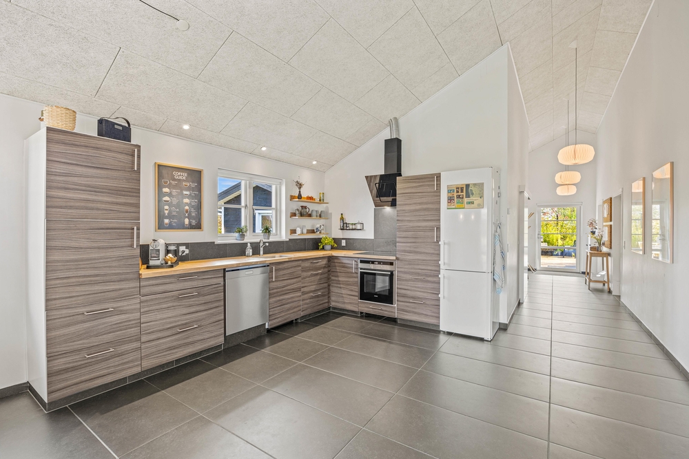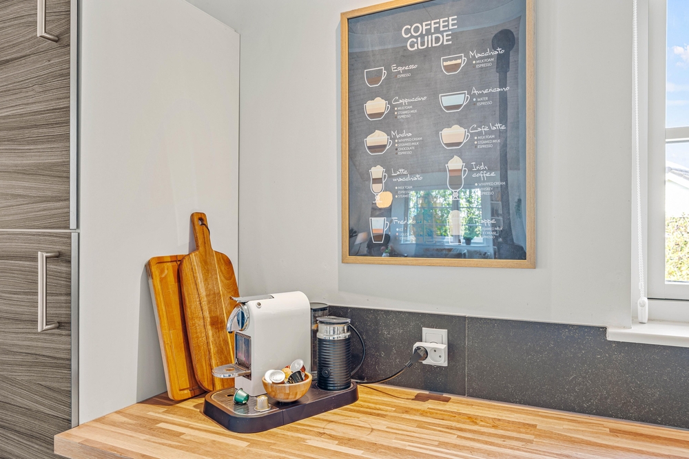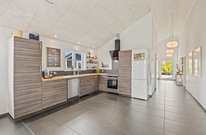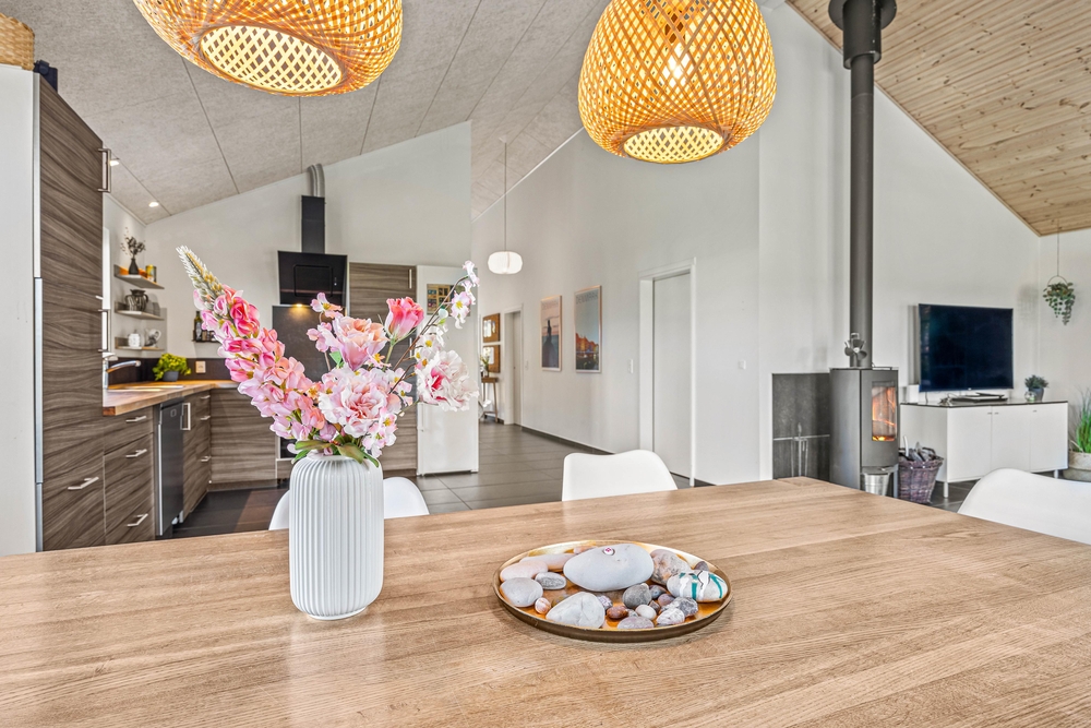 Der großzügige, offen gestaltete Wohnbereich ist das Herzstück des Ferienhauses und lädt zu behaglichen Stunden vor dem Kaminofen ein. Hier könnt ihr euch entspannen und die Gemütlichkeit in vollen Zügen genießen. Die offene Gestaltung schließt die moderne Küche ein, welche mit modernen Geräten wie einer Spülmaschine ausgestattet ist, um euch den Abwasch zu erleichtern.