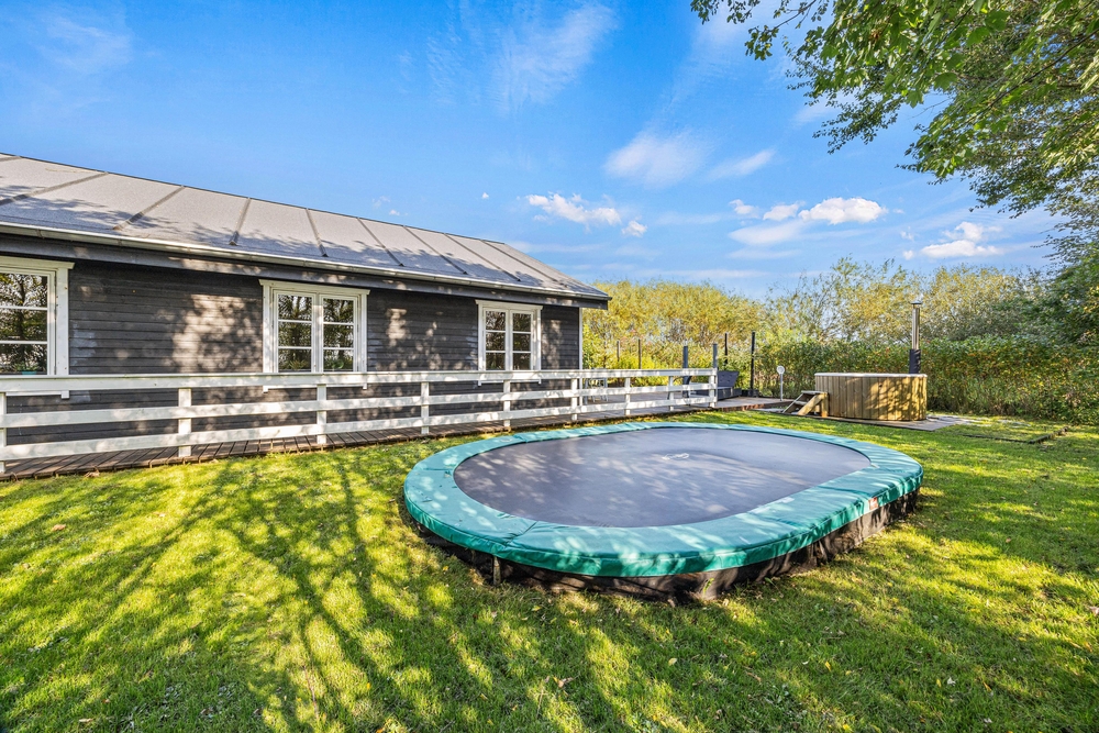 Das komfortable Ferienhaus verfügt über ein weitläufiges Rasengrundstück, das zahlreiche Möglichkeiten zur Freizeitgestaltung bietet. Hier könnt ihr mit den Kindern Fußball oder andere Spiele spielen, Trampolin springen oder einfach auf einer Decke im Gras liegen und die Natur genießen.