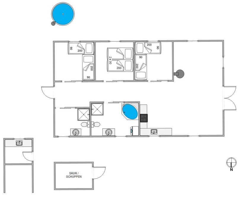 Das schöne Ferienhaus verfügt über 3 komfortable Schlafzimmer. Eines der Schlafzimmer ist mit einem Doppelbett ausgestattet, während die beiden anderen Schlafzimmer über je 2 Einzelbetten verfügen. Mit 2 komfortablen Bädern mit Fußbodenheizung, bietet das Ferienhaus ausreichend Platz für alle. Der Whirlpool lädt zum Verweilen ein ? hier könnt ihr die Seele baumeln lassen.