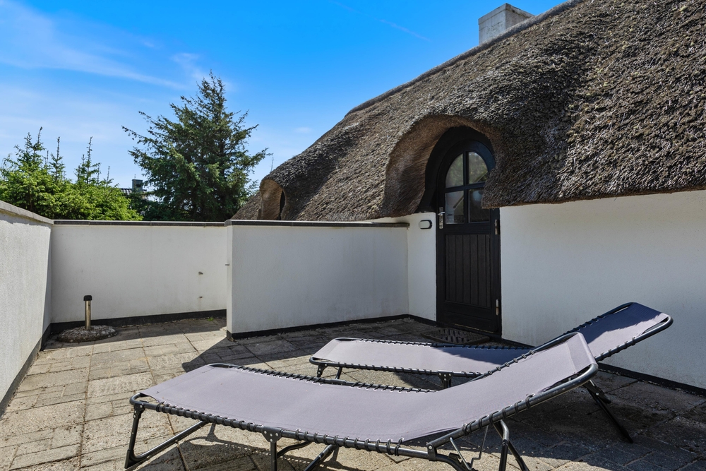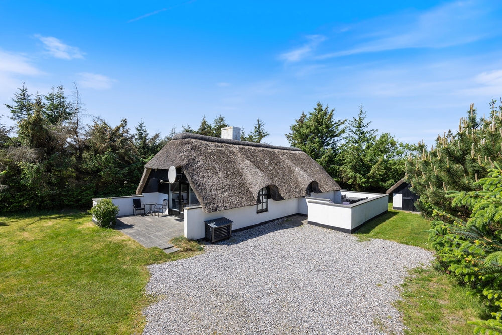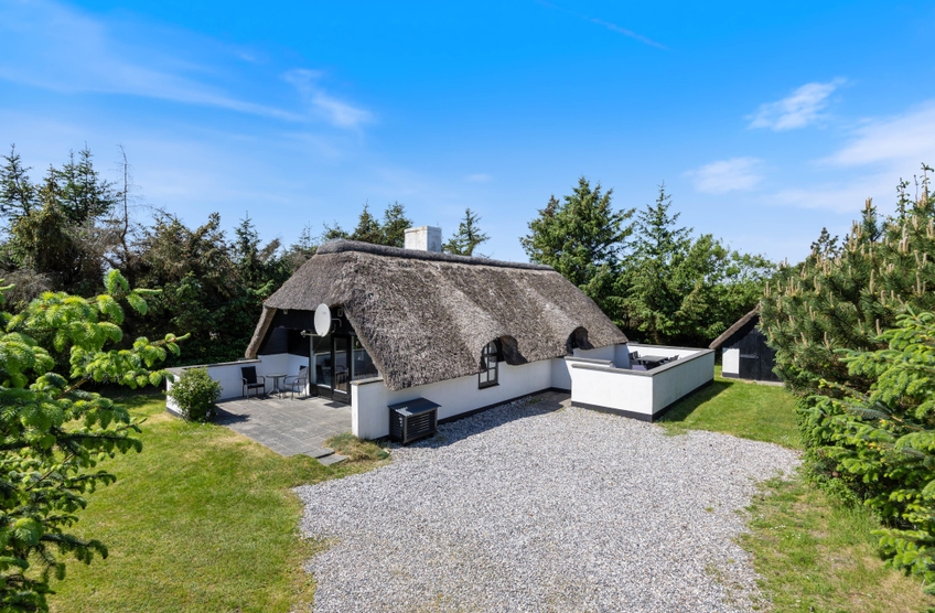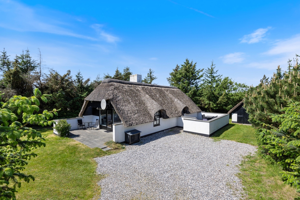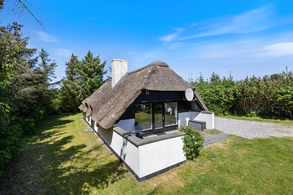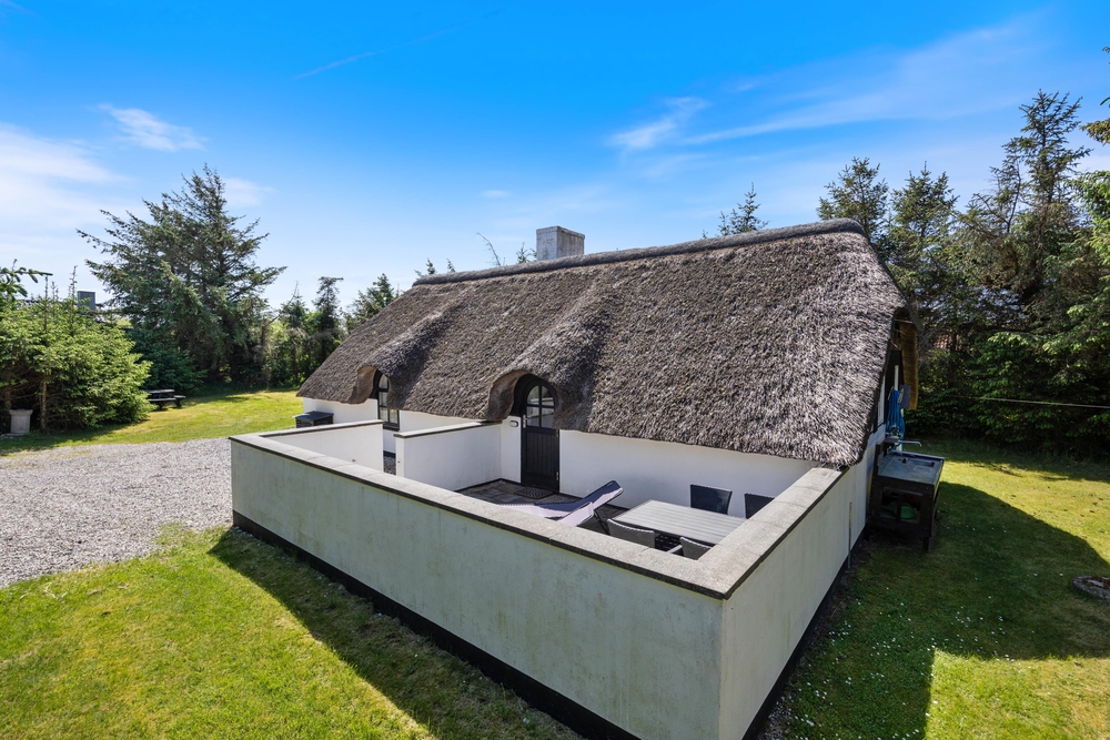 Freut euch auf einen entspannten Urlaub im dänischen Ferienhaus-Klassiker: Strahlend weiß mit typisch nordischem Reetdach wartet dieses Urlaubsdomizil in Haurvig auf seine Gäste.
