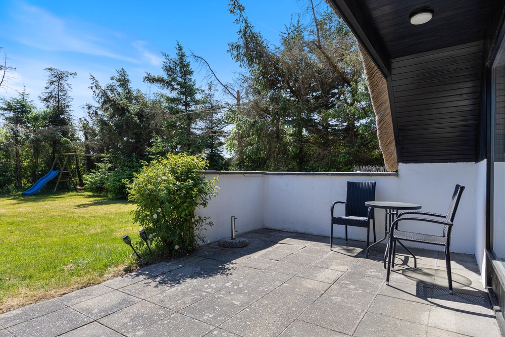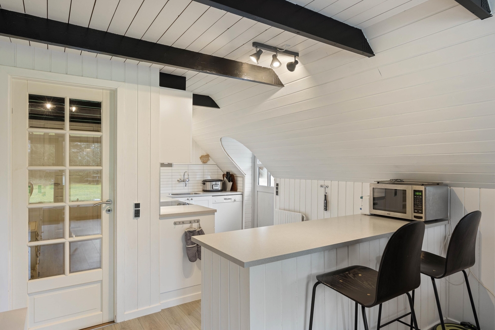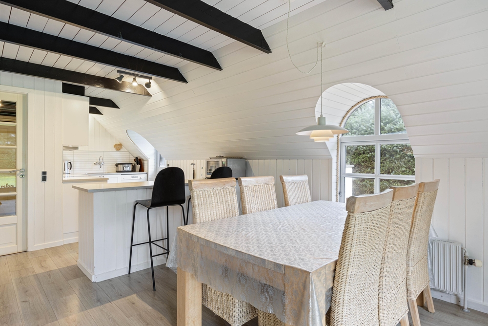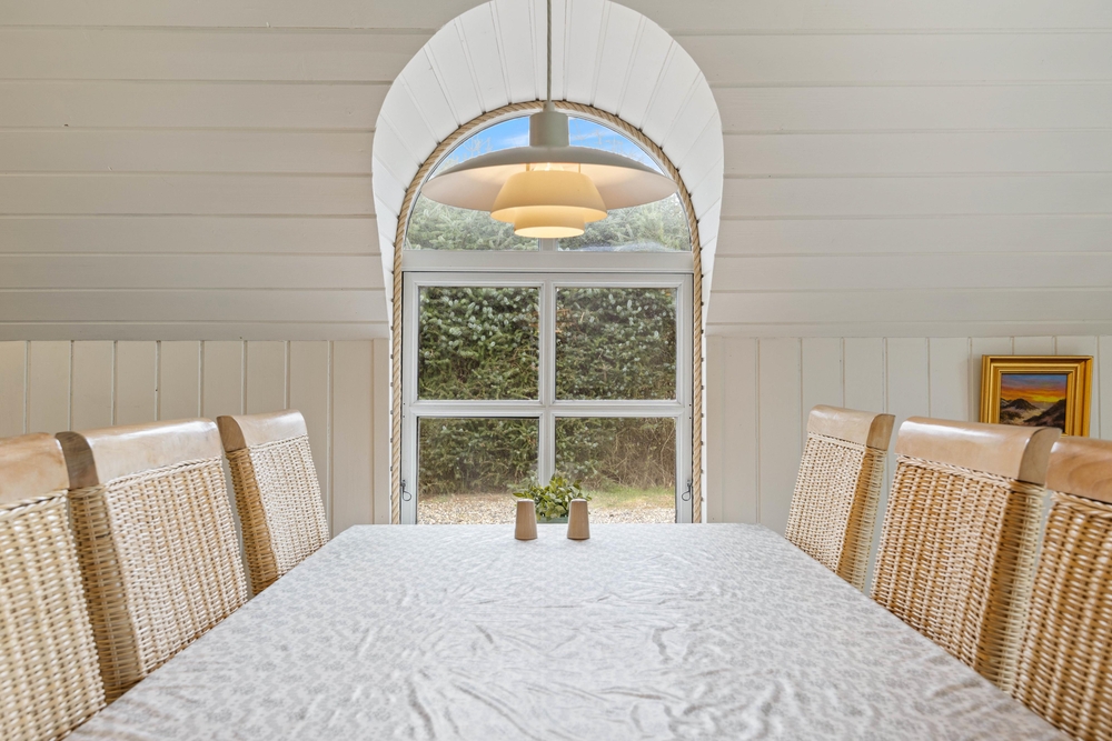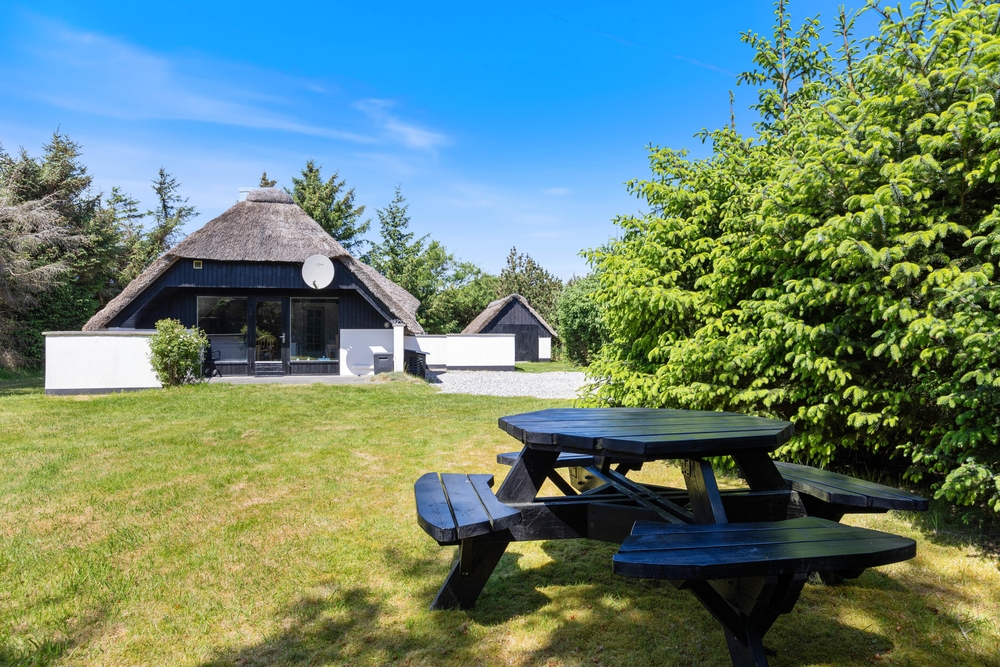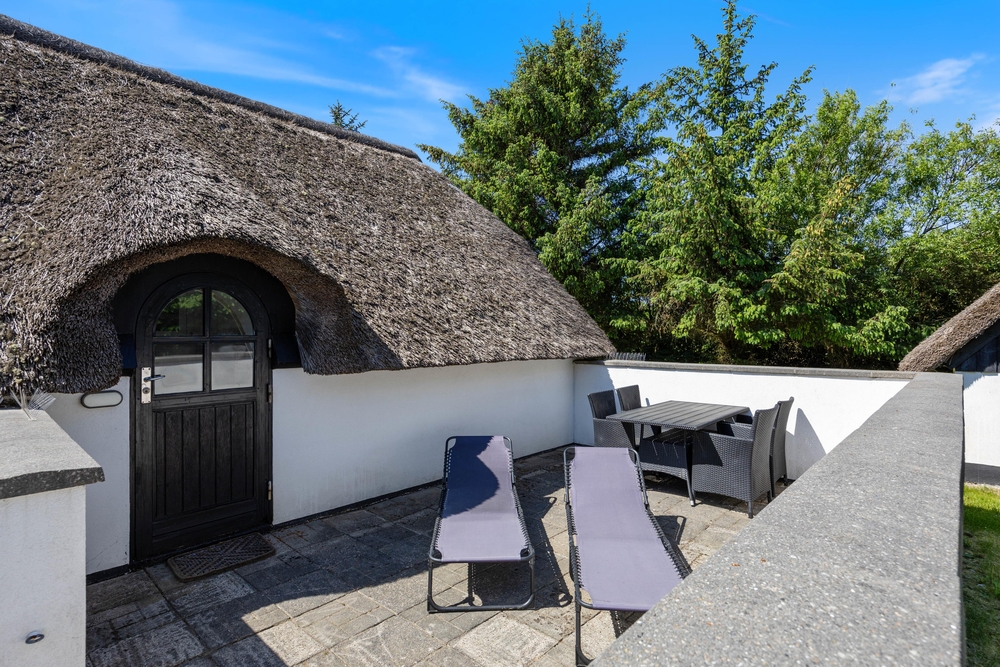Freut euch auf einen entspannten Urlaub im dänischen Ferienhaus-Klassiker: Strahlend weiß mit typisch nordischem Reetdach wartet dieses Urlaubsdomizil in Haurvig auf seine Gäste.