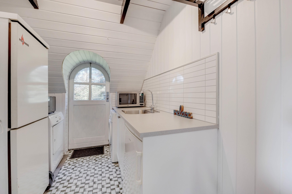 Auf einem idyllischen, von Nadelgehölzen gesäumten Grundstück nahe des Fjordes spürt ihr schon beim ersten Ankommen eine herrlich wohltuende Ruhe.