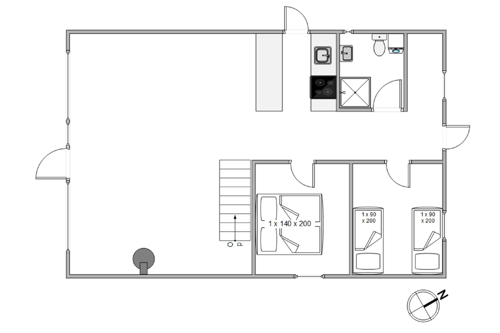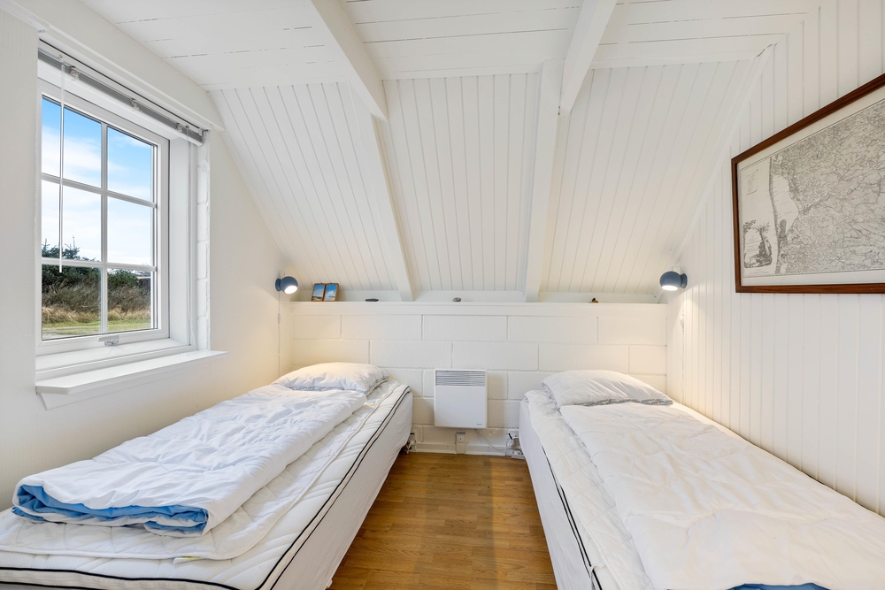 Ausser den beiden gemütlichen Schlafzimmern gibt es einen offenen Schlafboden, auf dem sich die jüngeren Gäste sicherlich sehr wohl fühlen werden. Aus dem kleinen Fenster habt Ihr eine tolle Aussicht über die umliegende Dünenlandschaft.