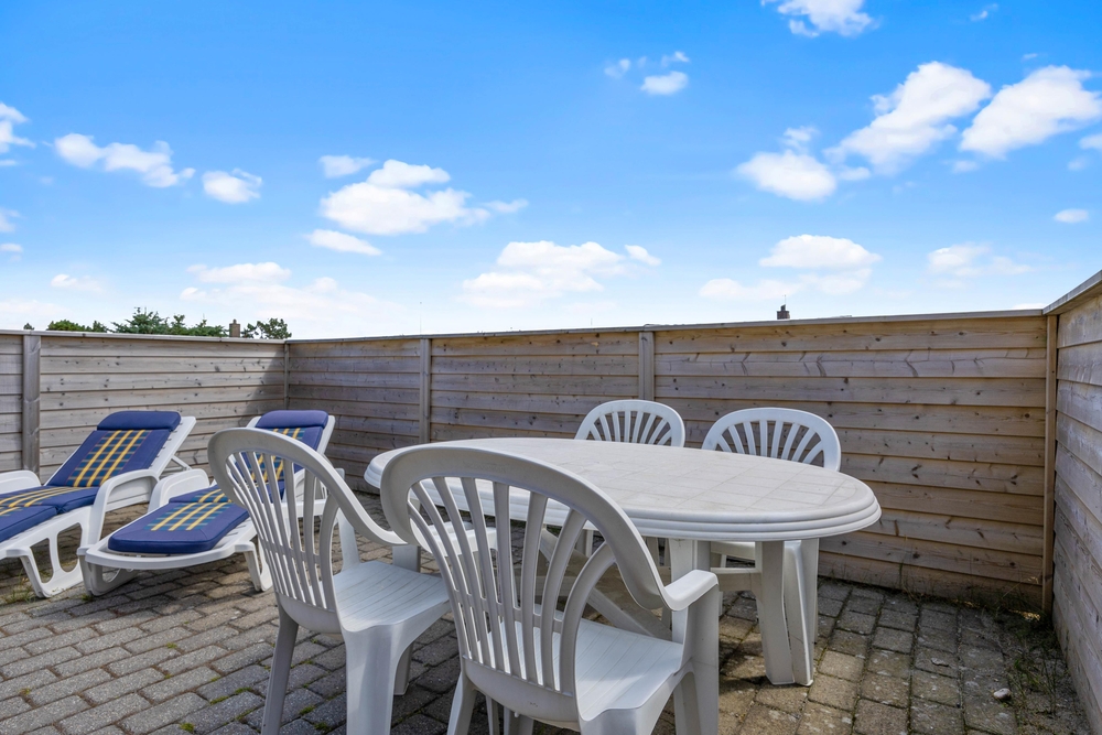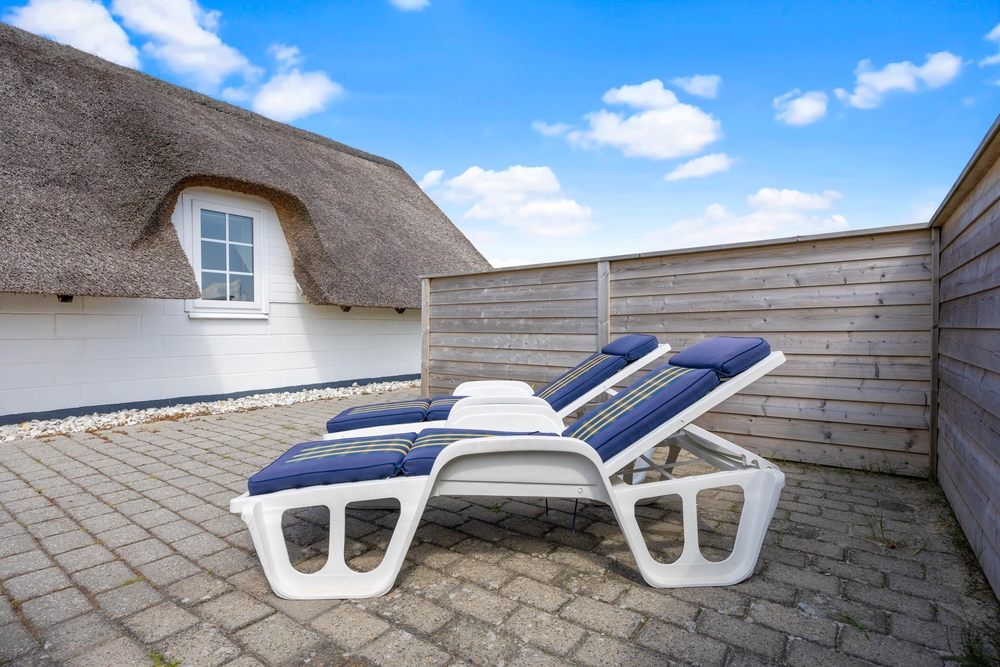 Das Haus ist von einer schönen windgeschützten und teilweise abgeschirmten Terrasse umgeben, die es Euch leicht macht dem Verlauf der Sonne zu folgen. Hier findet Ihr den ganzen Tag über ein sonniges Plätzchen zum Sonnenbaden oder zum Grillen. Beim abendlichen Grillen, könnt Ihr in der Ferne das Meer rauschen hören.