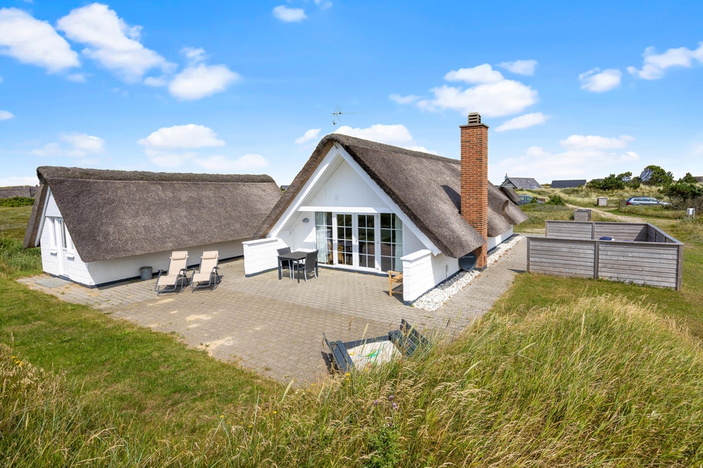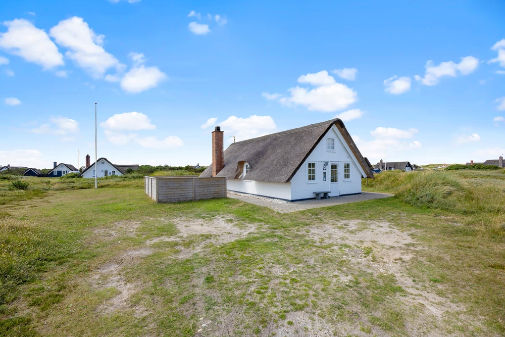 Im Kræ Degns Vej 23 liegt auf einem hügeligen Dünengrundstück dieses gemütliche Reetdachhaus und wartet auf Euren Besuch. Das liebevoll renovierte und einladend eingerichtete Ferienhaus bietet Platz für bis zu 4 Personen, eigntet sich also prima für eine kleine Familie oder für romantische Ferien zu zweit. Auch Eure Hunde sind hier, nur 500 Meter von der tosenden Nordsee entfernt, gern gesehene Gäste.
