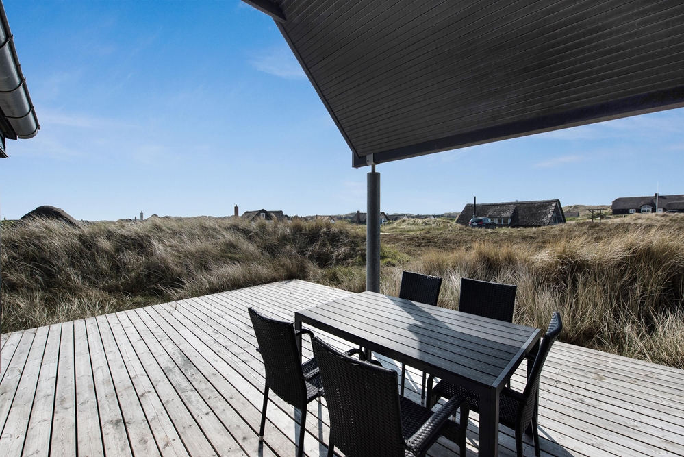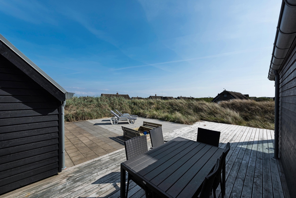 Durch die Bauweise des Hauses gibt es auf der Terrasse viele windgeschützte Plätze rund um das Haus, sodass ihr den ganzen Tag auf der möblierten Terrasse verbringen könnt. Abends könnt ihr etwas Leckeres auf dem Grill zubereiten und den Tag entspannt ausklingen lassen.
