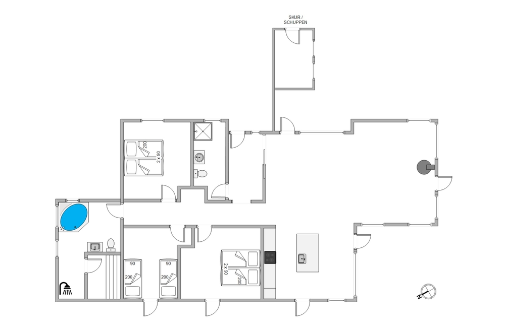 Das Haus besitzt 3 schöne und helle Schlafzimmer und 2 schicke Badezimmer. In dem größeren Bad stehen eine Sauna und ein Whirlpool zur Verfügung, in denen ihr euch nach einem langen Spaziergang an der Nordsee entspannen könnt.