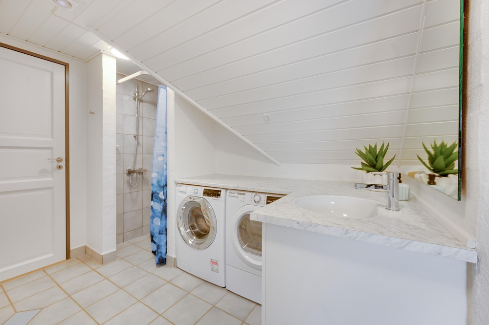 Die Verteilung der Räumlichkeiten ist gerade bei mehreren Familien sehr praktisch. Es gibt insgesamt 5 Schlafräume sowie 2 Badezimmer mit Fußbodenheizung. Darüber hinaus stehen euch hier eine Waschmaschine sowie ein Wäschetrockner zur Verfügung, was gerade bei einem Poolhaus sehr praktisch ist.