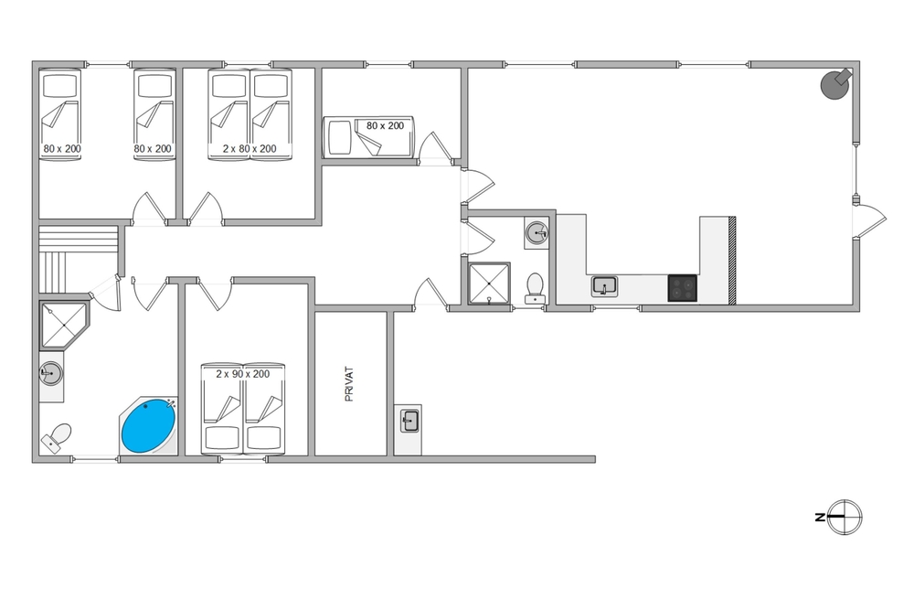 Dieses gemütlich-eingerichtete Ferienhaus ist ideal für Familien mit Kindern oder eine Gruppe von Freunden, welche gerne angeln gehen. Es stehen euch 4 praktisch eingerichtete Schlafzimmer zur Verfügung und des Weiteren 2 Badezimmer, wobei eines zusätzlich über eine schöne Sauna und einen modernen Whirlpool verfügt. Hier könnt ihr euch nach einem ereignisreichen Urlaubstag vollständig verwöhnen lassen und gemeinsam den nächsten Urlaubstag planen.