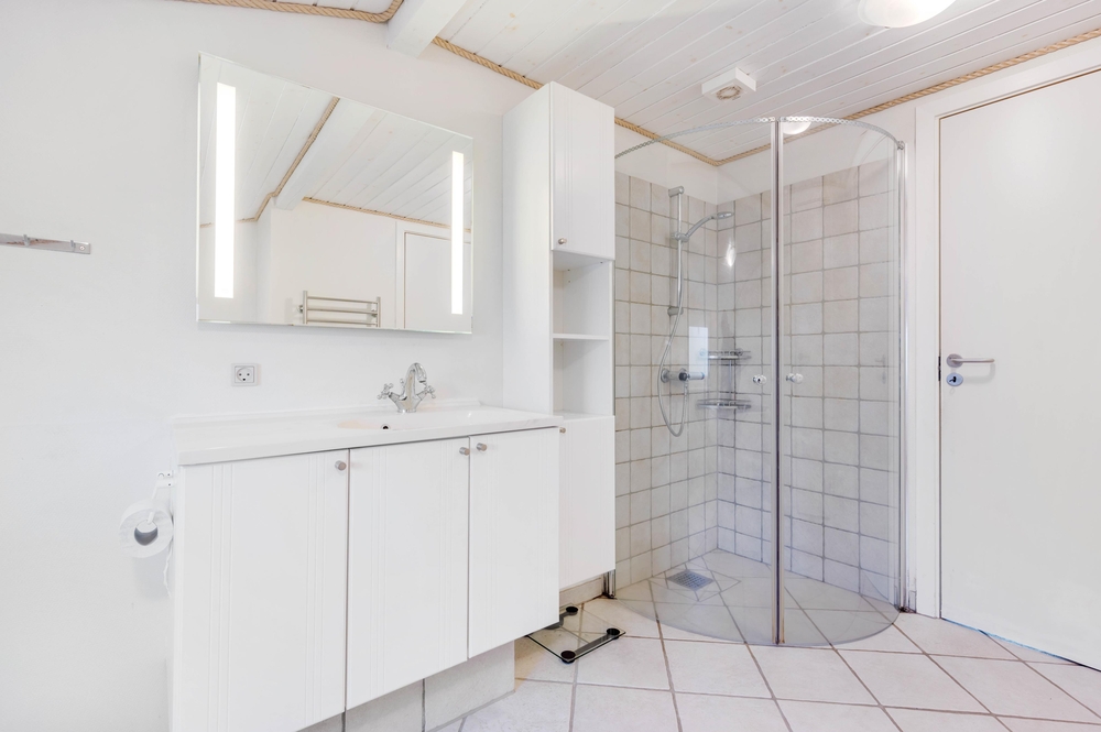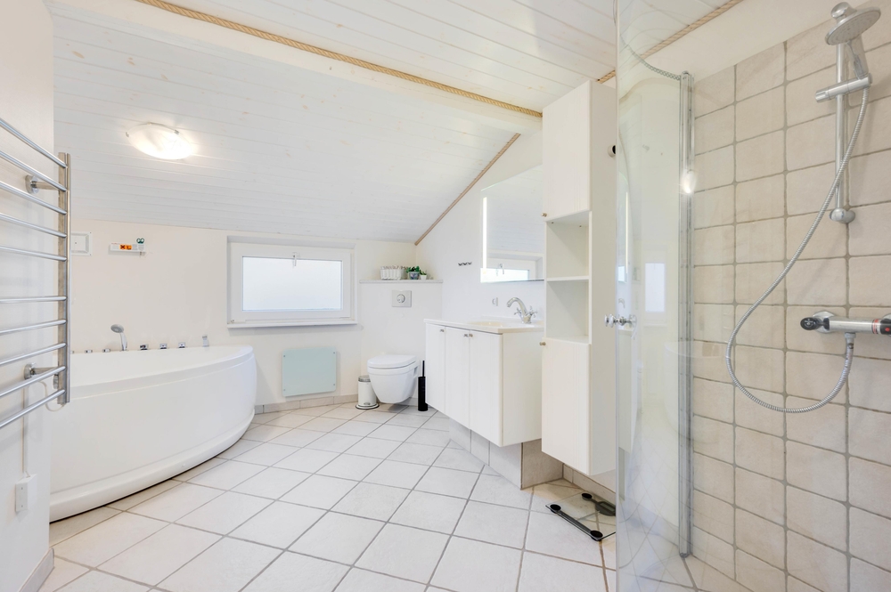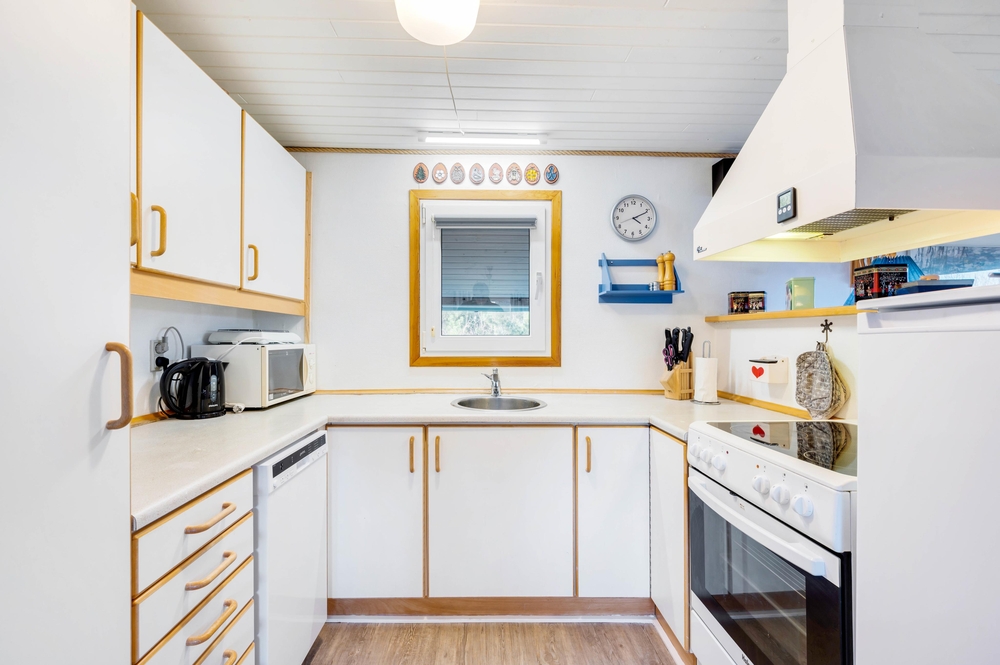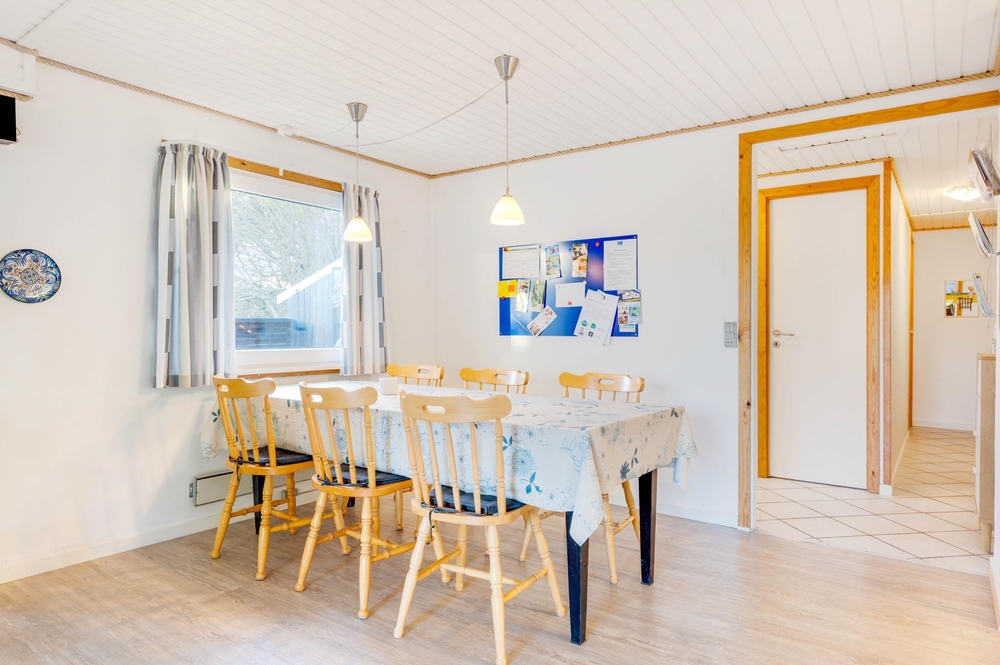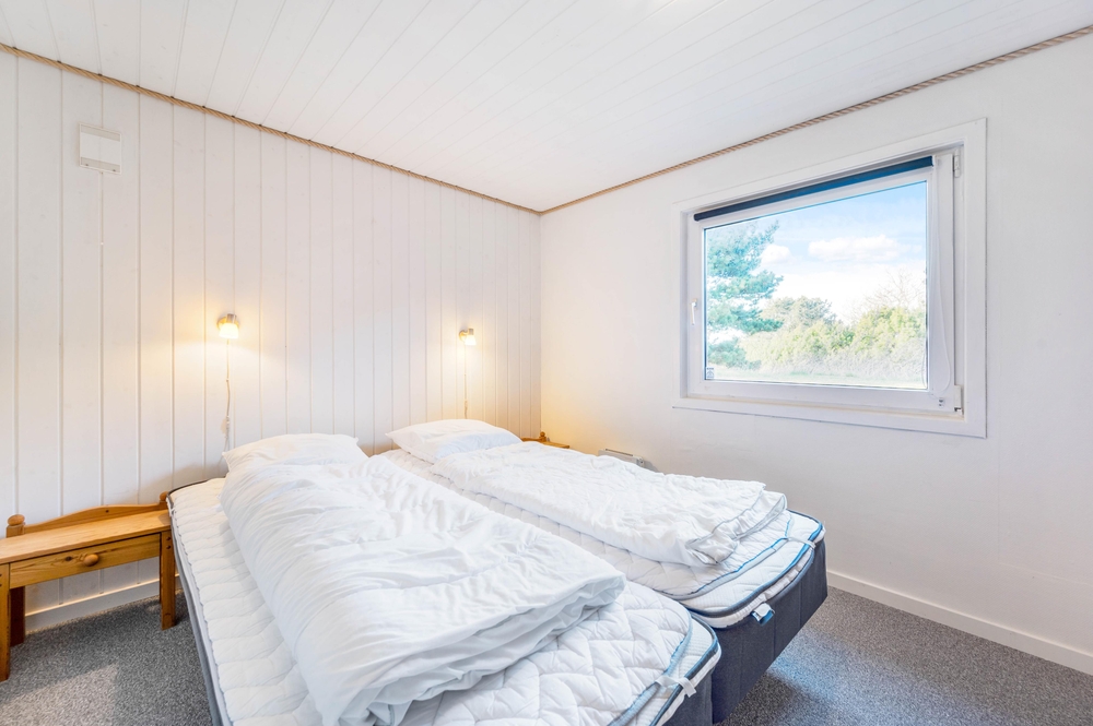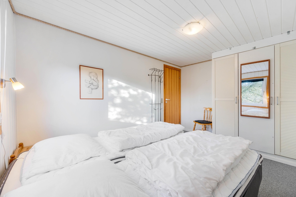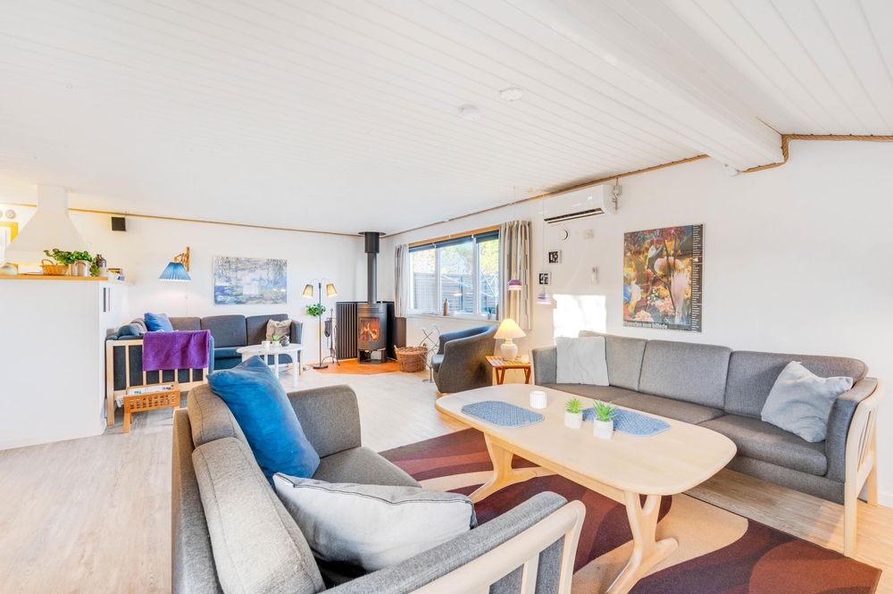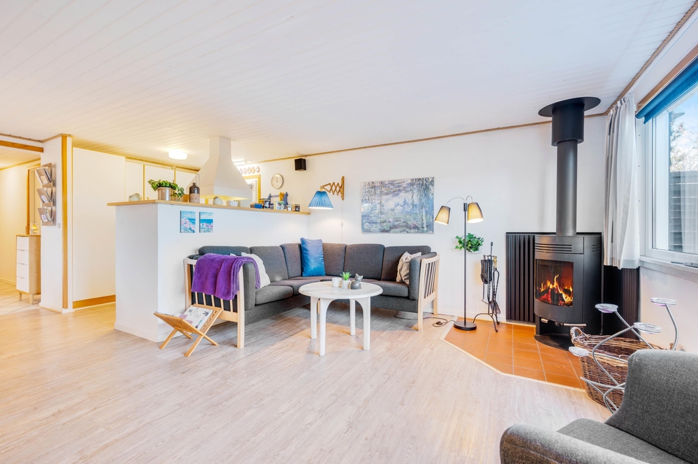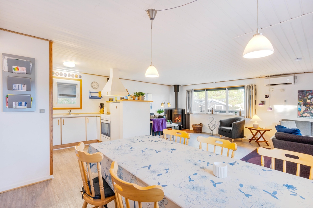 Der offen gestaltetet Wohn- und Essbereich ist hell und freundlich und die angeschlossene offene Küche ist gut ausgestattet. In diesem Ferienhaus wird das gemeinsame Kochen zum Erlebnis und um den Abwasch kann sich die Geschirrspülmaschine kümmern. Am Esstisch im offenen Essbereich könnt ihr dann anschließend eure Köstlichkeiten schlemmen. Für die Angler unter euch steht ein 100 Liter Gefrierschrank für den gefangenen Fisch bereit. Der Angel See ist nicht weit entfernt. Wenn es Abend wird, gibt es nichts Schöneres, als den Kamin anzuzünden. Er schafft eine gemütliche und warme Atmosphäre im Ferienhaus und ihr könnt euch bei einem guten Buch oder einem guten Film entspannen. Vollkommene Entspannung findet ihr dann zum Abschluss des Abends im Whirlpool und in der Sauna. Das Ferienhaus ist mit 3 großen Schlafzimmern ausgestattet, 2 der Zimmer haben Doppelbetten und das andere hat 2 Einzelbetten. Hier werdet ihr einen erholsamen Schlaf finden, um neue Energie für den nächsten ereignisreichen Urlaubstag zu tanken. Es gibt ein Badezimmer, dass mit einer Fußbodenheizung beheizt werden kann. Neben der modernen und energiesparenden Wärmepumpe stehen euch auch eine Waschmaschine und ein Trockner zur Verfügung.