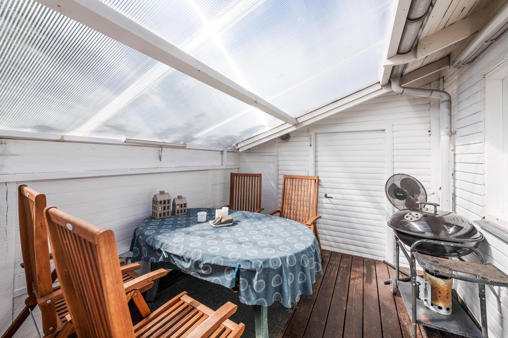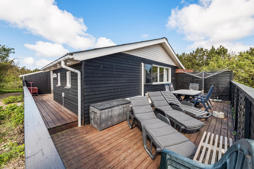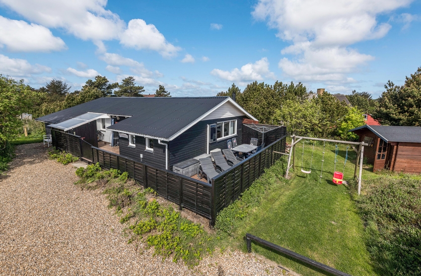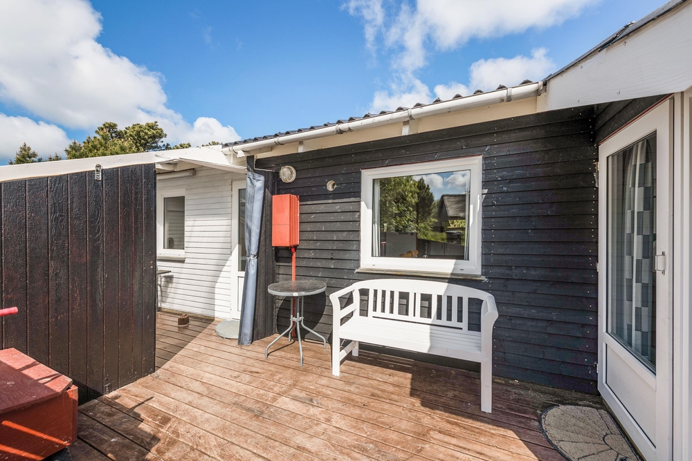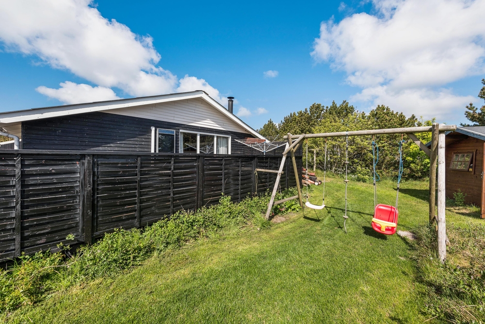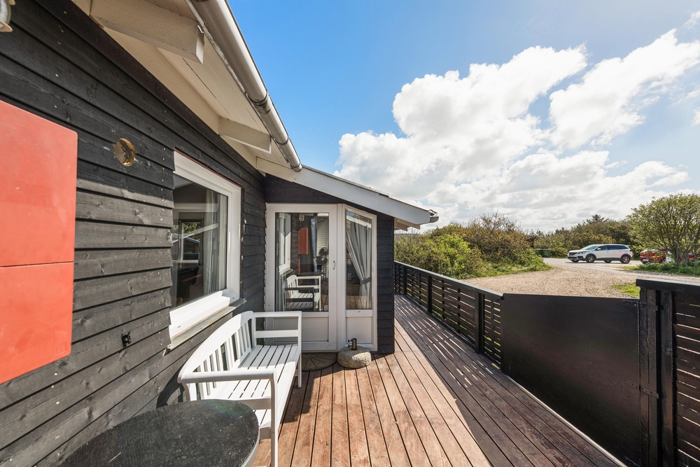 Die geschlossene und teilweise überdachte Terrasse ist vor allem an warmen und sonnigen Tagen ein schöner Aufenthaltsort für die ganze Familie. Euer Hund kann sich auf der Terrasse frei bewegen und die Kinder können nebenan auf der Wiese und der Schaukel spielen. Auf dem offenen Teil der Terrasse könnt ihr euch bei einem Sonnenbad entspannen und wenn das Wetter mal nicht ganz mitspielt, könnt ihr unter dem überdachten Teil trotzdem den Gasgrill anschmeißen. Von hier aus sind es 800 Meter bis zum herrlichen Nordseestrand, sodass ihr einen Sparziergang dorthin machen und anschließend die Füße ins Wasser halten könnt.