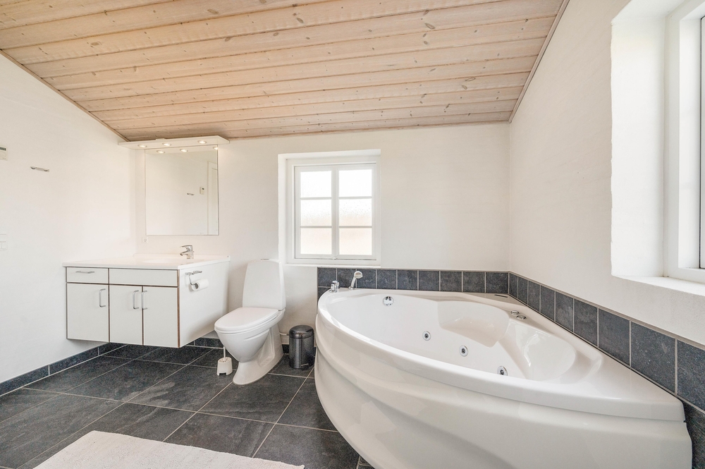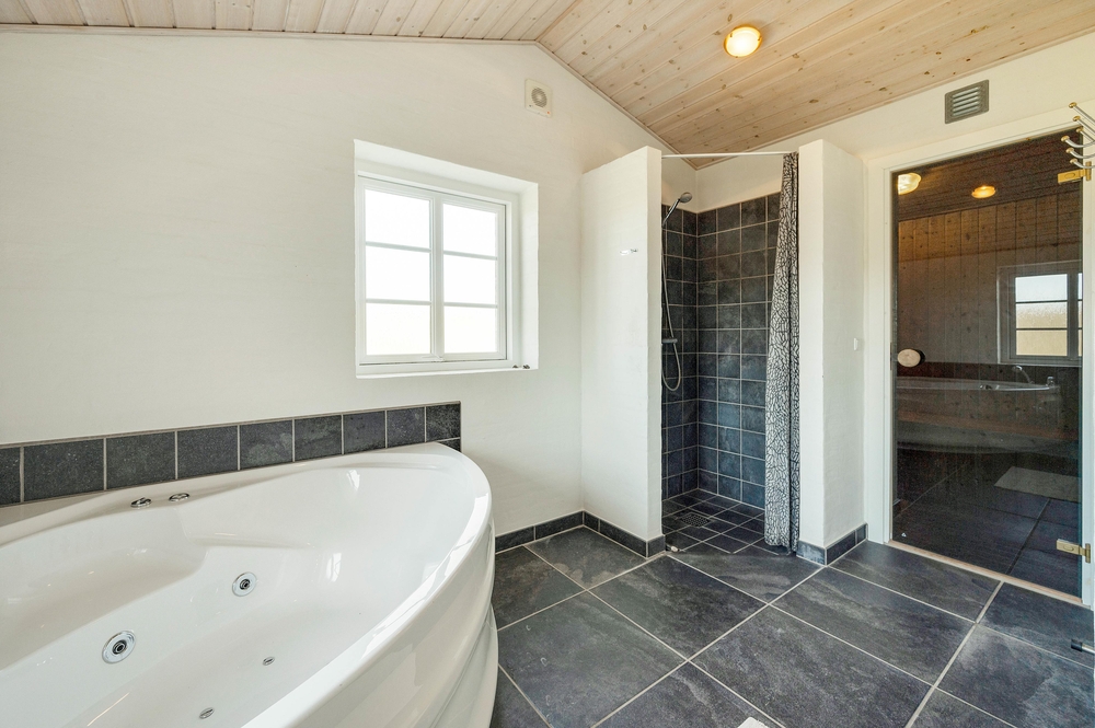 Das große Badezimmer verfügt über Fußbodenheizung, Whirlpool und Sauna. In dem kleineren Bad findet Ihr eine Dusche und ebenfalls Fußbodenheizung vor.