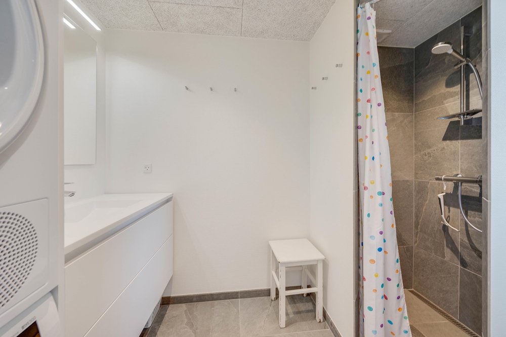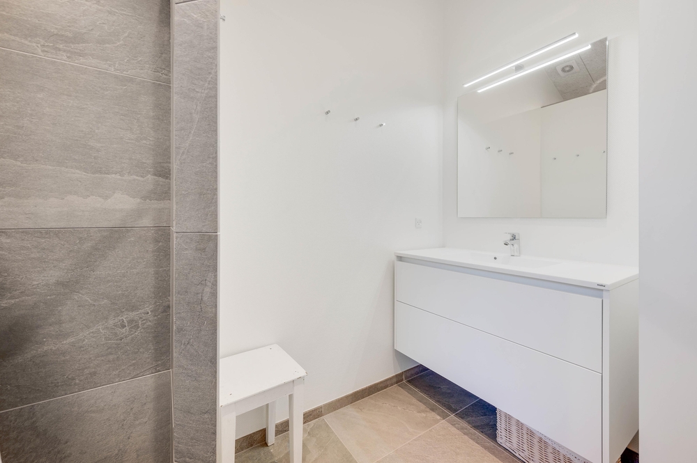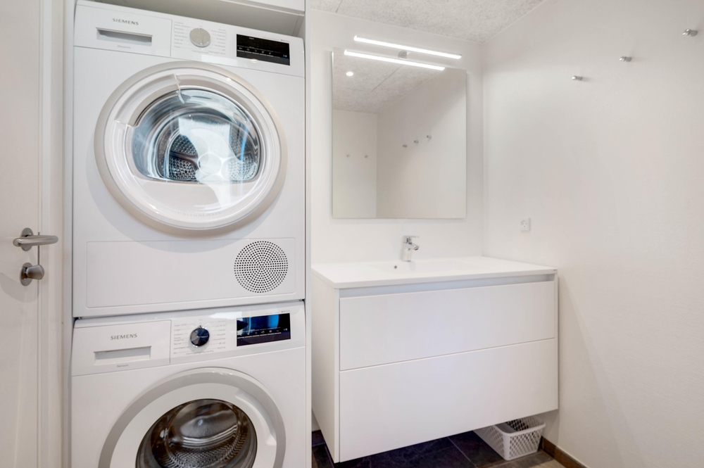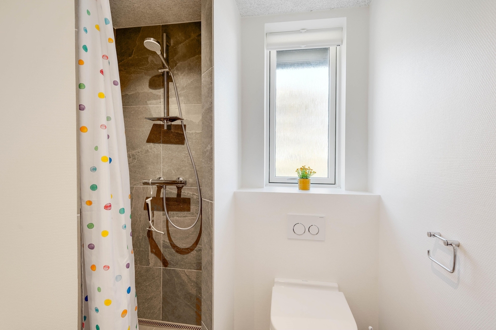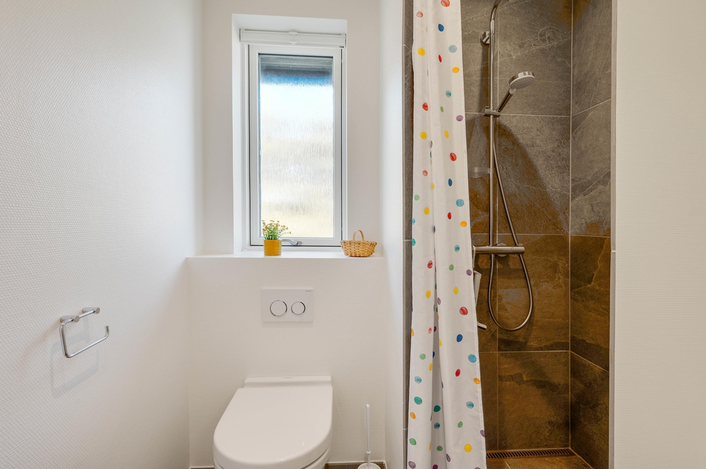 Des Weiteren verfügt das Haus über 3 Schlafzimmer, die in 2 Doppelbetten und 2 Einzelbetten unterteilt sind. Die 2 Badezimmer sind mit einer Fußbodenheizung ausgestattet und in einem findet ihr eine Waschmaschine und einen Trockner. Dies ist sicherlich eine große Hilfe, wenn man mit der Familie und kleinem Gepäck anreisen möchte.