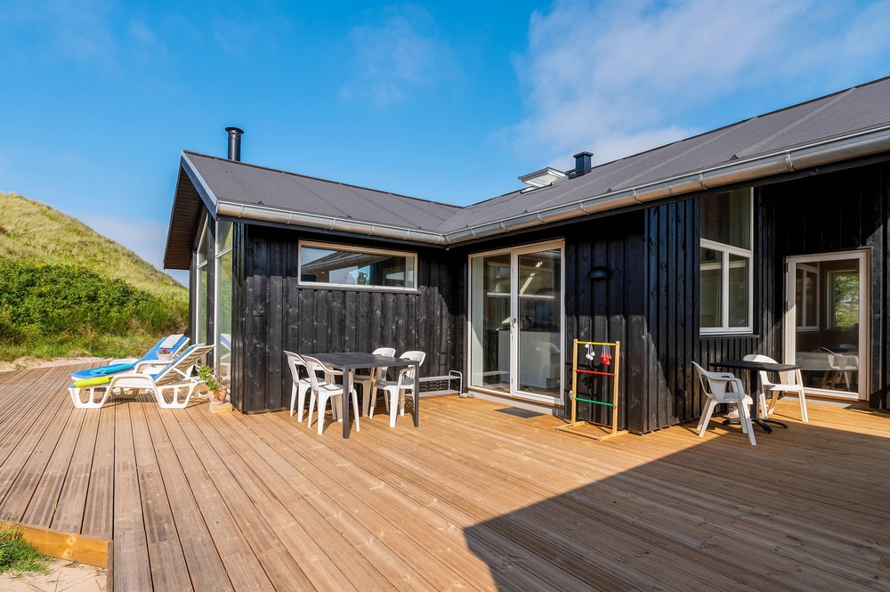 Rund ums Haus findet ihr verschiedenste Sitzmöglichkeiten und ein Sonnenbad auf einer der Sonnenliegen ist hier die reinste Erholung. Wenn ihr mögt, könnt ihr den Tag auf der Terrasse bei einem leckeren Abendessen vom hauseigenen Grill ausklingen lassen und mit einem kühlen Getränk den Sonnenuntergang hinter den Dünen genießen.