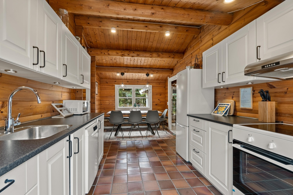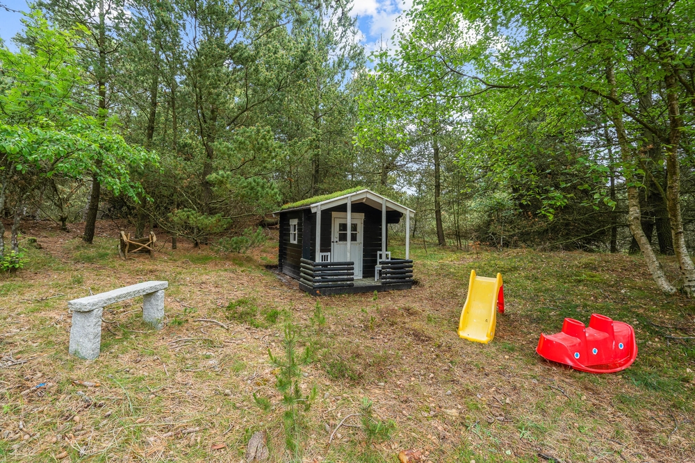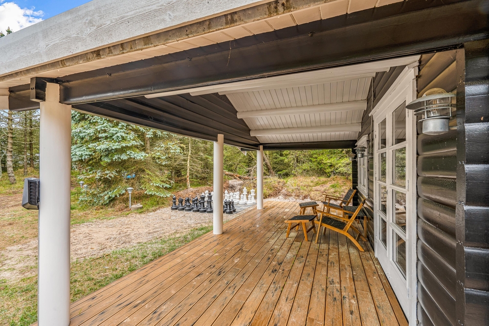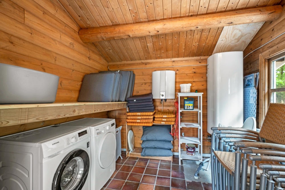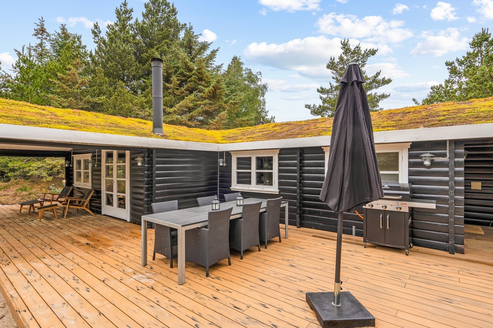 Die teilweise überdachte Terrasse ist mit Gartenmöbeln und Liegestühlen ausgestattet, sodass Sie sowohl Sonne als auch Schatten genießen können. Der Garten bietet Platz zum Spielen, wo Kinder sich am Spielgerüst vergnügen können, während die Erwachsenen die Ruhe auf der Terrasse genießen. Abends können Sie die Familie zu einem gemeinsamen Abendessen am Gasgrill versammeln und die friedliche Natur rund um das Haus genießen.