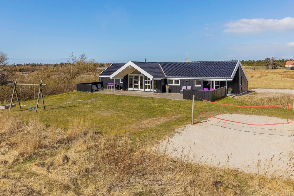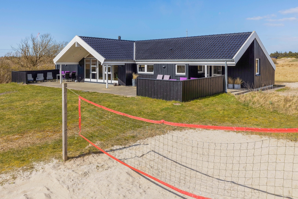 Im Krogsande 36 in Blåvand liegt dieses helle, moderne Ferienhaus auf einem großen Naturgrundstück, mit Weitblick über die herrliche Landschaft der Westküste Dänemarks. Erholung, Spaß und Action, in diesem Ferienhaus finden alle Ihr Ferienglück. Eine Sport Einheit auf dem Beachvolleyball Feld, mit anschließendem Entspannungsprogramm in der Sauna oder im Whirlpool. So könnte ein perfekter Urlaubstag in diesem Ferienhaus aussehen.
