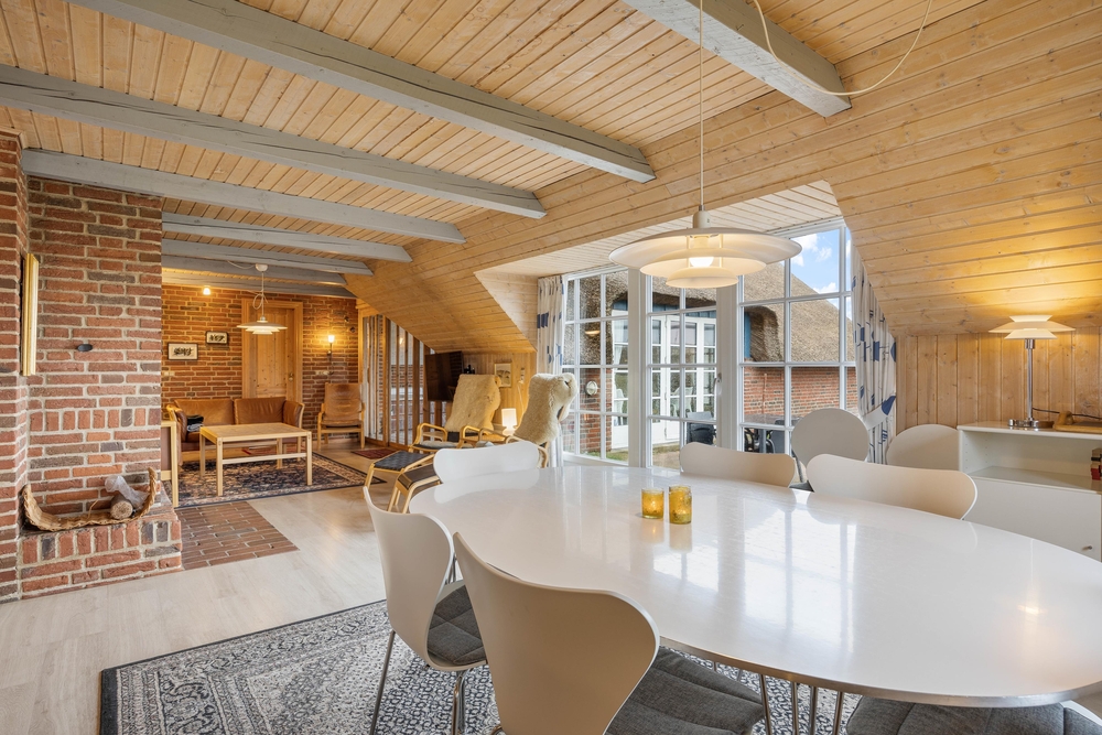 Wenn ihr ein Poolhaus mit Platz für Familie oder Freunde suchen, dann kann das Ferienhaus im Krylen 22 in Houvig eine gute Option sein. Das Ferienhaus bietet Platz für 8 Personen und verfügt über einen Pool, eine Sauna, einen Whirlpool und einen Holzofen. Wenn ihr 2 Hunde habt, sind diese natürlich auch willkommen. Das reetgedeckte Ferienhaus liegt ca.180 m vom Strand entfernt