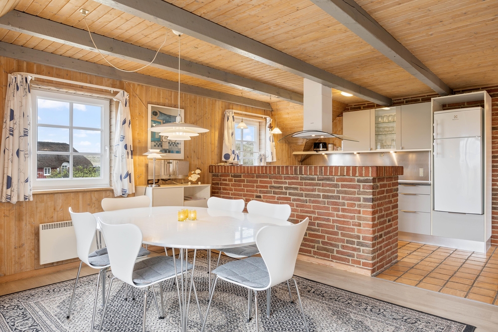 Das Wohnzimmer des Ferienhauses ist der Treffpunkt, an dem sich die ganze Familie versammeln kann. Die Wärme und das Knistern des Holzofens sowie der Einrichtungsstil tragen dazu bei, die gemütliche Atmosphäre im Ferienhaus zu verbreiten. Das offene Wohnkonzept sorgt dafür, das ihr eure Zeit gemeinsam verbringen könnt, egal ob kulinarische Meisterwerke gezaubert werden, spannende Spieleabende stattfinden oder alle gemütlich Fernsehschauen. Die Fußbodenheizung ist auch hier für wohlig warme Füße zuständig. Eine energiesparende Luft-zu-Luft Wärmepumpe sorgt für eine angenehme Raumtemperatur.