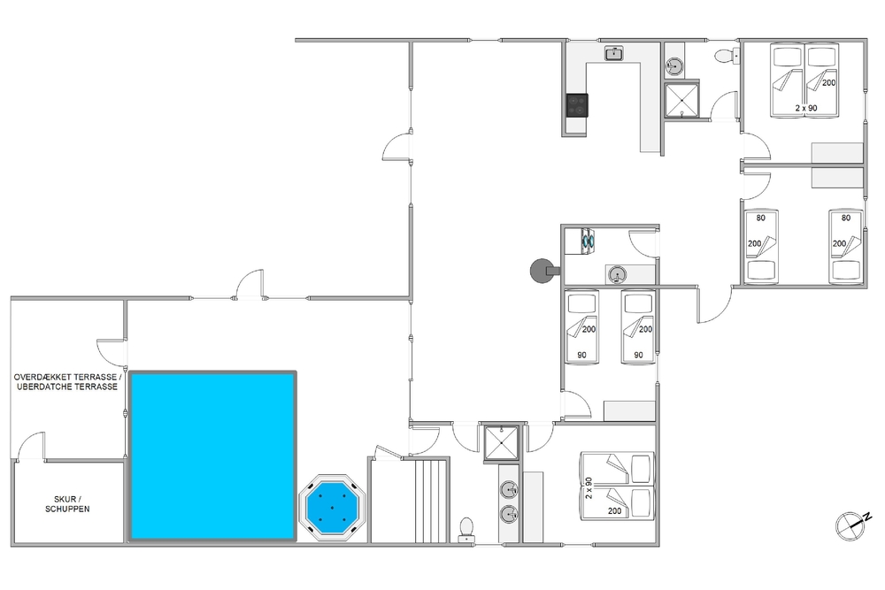Das Ferienhaus in Krylen 22 ist mit seinen 175 m2 sehr geräumig für die ganze Familie. Im Ferienhaus findet ihr einen 30 m2 großen Pool mit einer Gegenstromanlage als auch einen Whirlpool für 3 Personen. Wenn ihr euch nach dem Schwimmen entspannen wollt, ist die Sauna genau richtig dafür, die auch im Poolraum zu finden ist.