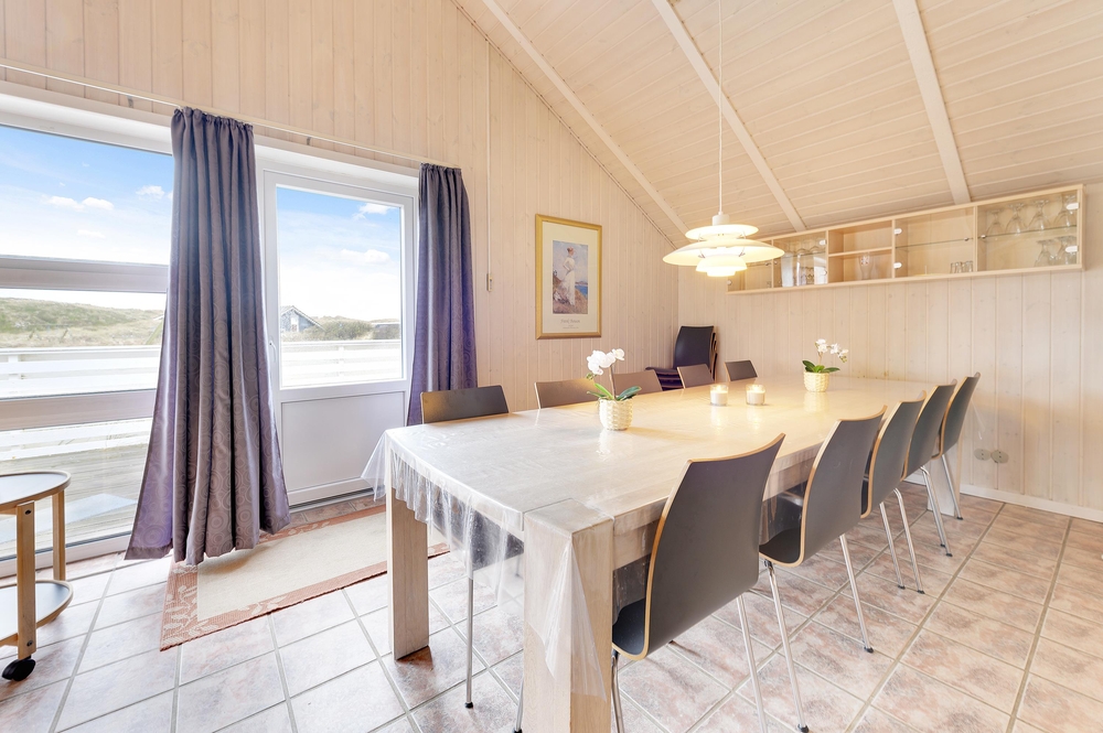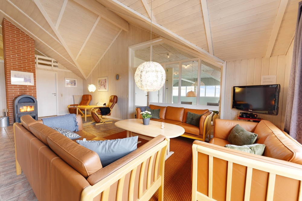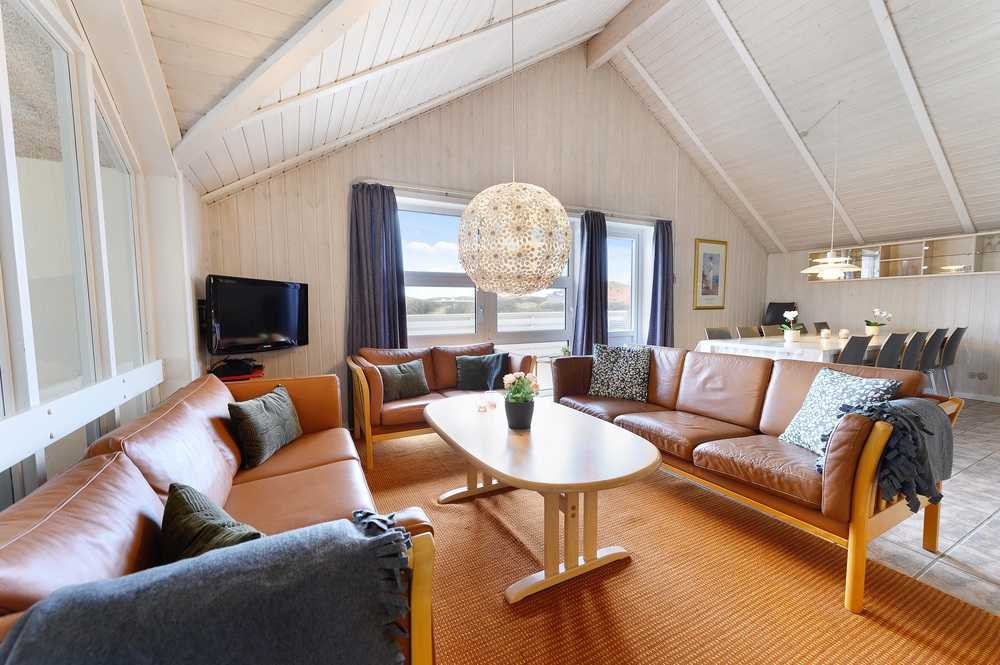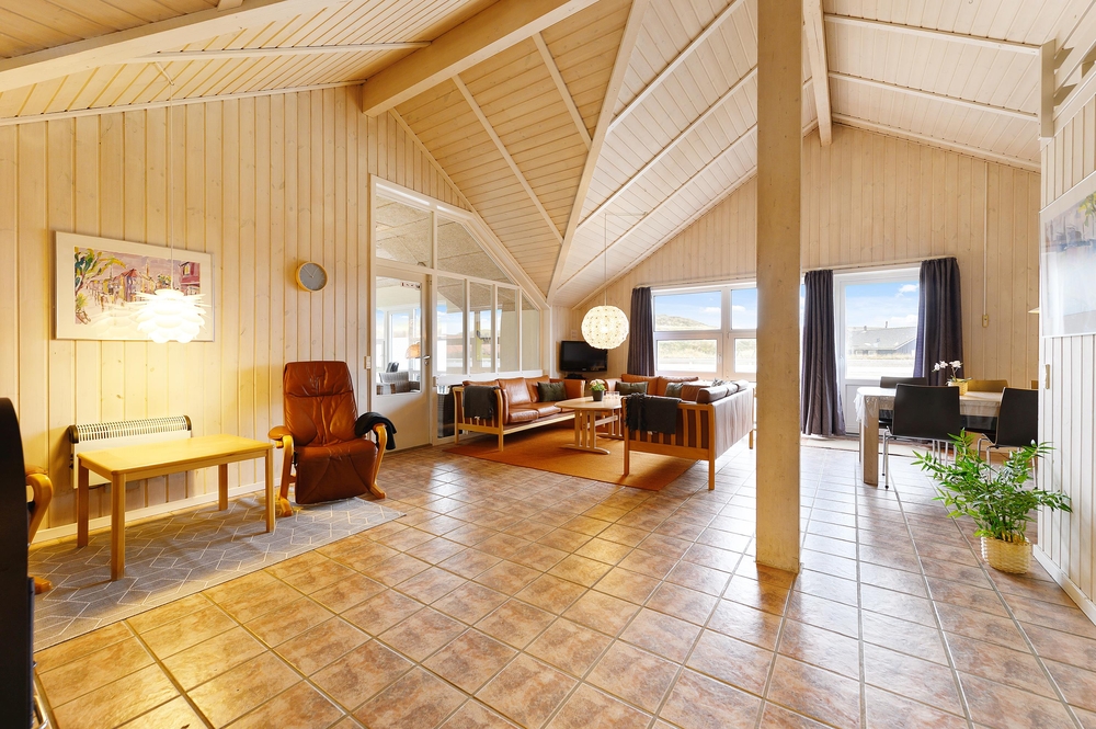 In der gemütlichen Ecke mit den Sofas und den Sesseln finden alle Mitreisenden einen Platz, um den Tag ausklingen zu lassen oder den nächsten Tag zu planen. Die hellen Farben an den Wänden in Kombination mit den holzfarbenden Möbeln laden in das Ferienhaus im Krylen 7 ein. Am großen Esstisch könnt ihr zusammen frühstücken oder einen Spieleabend bei Kerzenlicht und einem Glas Wein veranstalten.