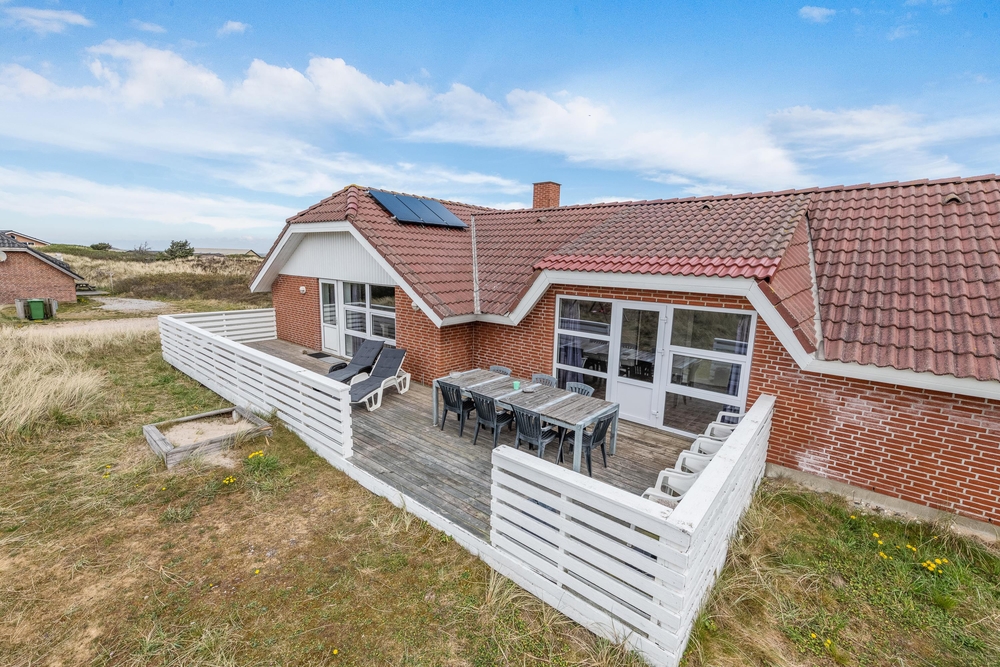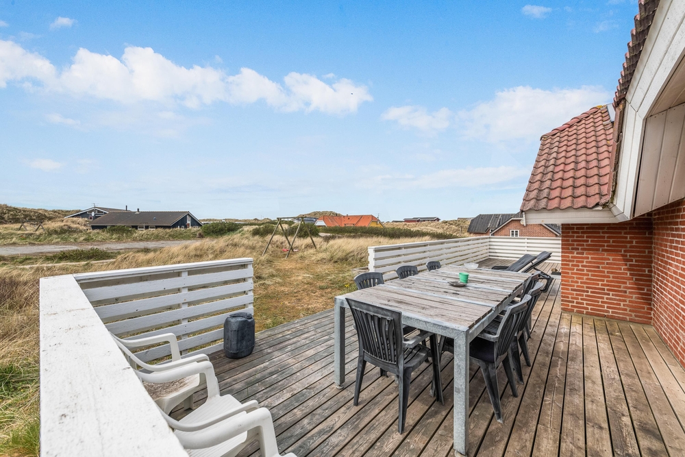 Auf der Terrasse habt ihr einen wundervollen Blick auf die umliegende Dünenlandschaft und ihr könnt euch auf den Sonnenliegen und Gartenmöbeln sonnen. Solltet ihr lieber im Schatten sitzen oder es ein wenig regnen, dann könnt ihr es auf der überdachten Terrasse gemütlich machen. Mit dem Grill lassen sich hervorragend leckere Speisen als Abendessen zubereiten. Der Weg zum Strand zeichnet sich durch seine Kürze aus, denn nach nur 350 Metern erreicht ihr schon den kilometerlangen Strand und die tosende Nordsee.