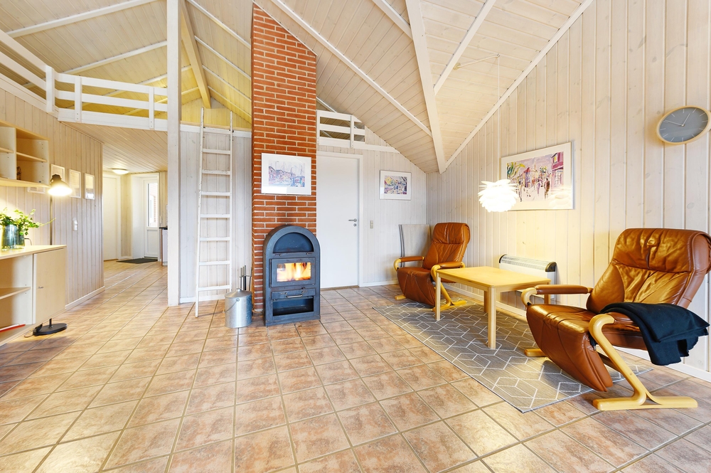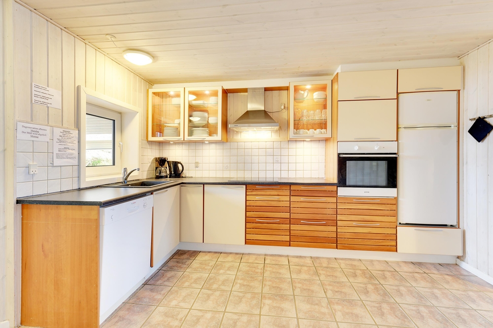 Für alle Urlaubsköche wurde eine große Küche mit Geschirrspüler installiert, damit man zusammen kochen und nette Stunden gemeinsam verbringen kann. Im Wohnbereich steht der Kaminofen für diejenigen, die lieber gemütlich ein Buch lesen, während sie sich aufwärmen können.