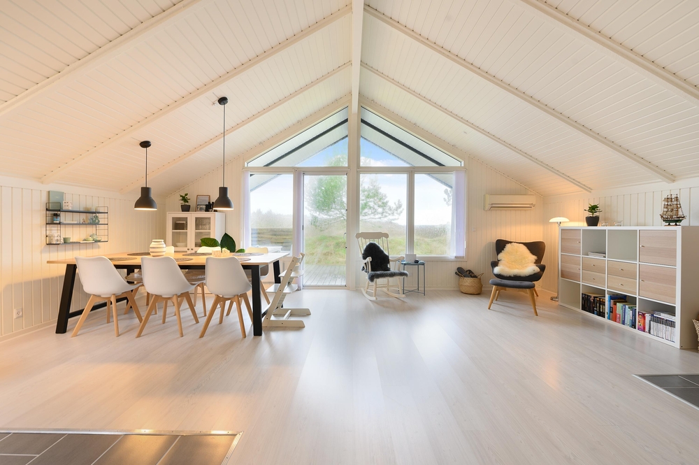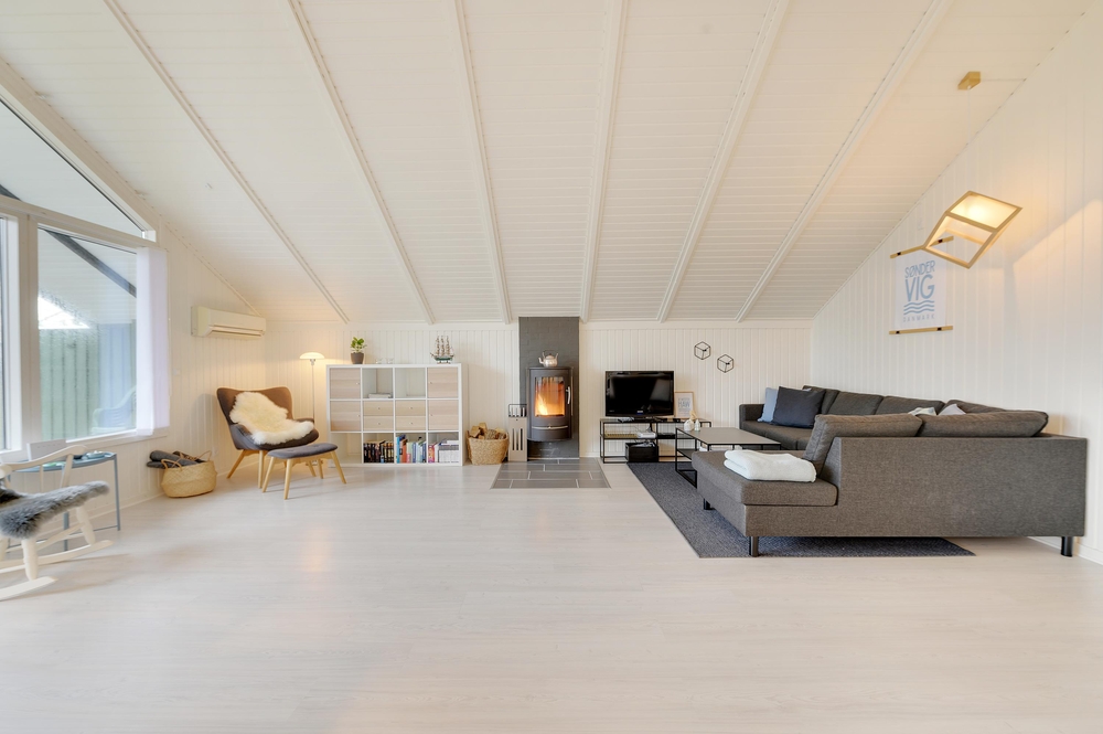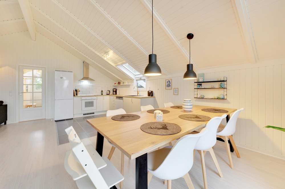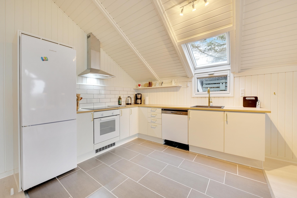 Die offene und gut ausgestattete Küche bietet euch alles was ihr für eueren Aufenthalt braucht. Das Dachfenster in der Küche, die große Fensterfront im Wohnbereich und die helle Gestaltung der Decken, Wände und Holzfußböden sorgt für viel Helligkeit und einem schönen Raumgefühl.