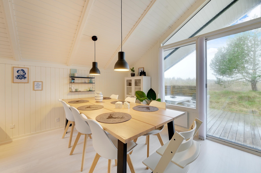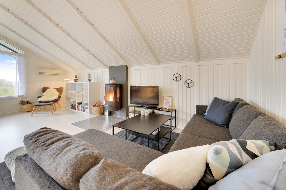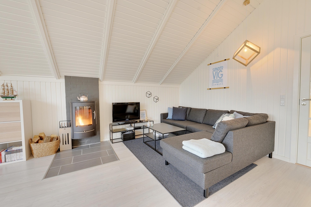 Im Zentrum des gemütlichen Ferienhauses steht der offene Wohnraum mit Küche, wo ihr von der Essgruppe aus einen wunderschönen Blick ins Grüne habt. Die Einrichtung ist sehr ansprechend und man fühlt sich gleich willkommen mit den schönen Details, die man in jedem Raum antrifft. Rückt euch den Lesesessel direkt vor dem Kaminofen und lehnt euch zurück, während ihr eine warme Tasse Kakao genießt und Musik über die Bluetooth Dockingstation hört.Für eine wohlige Wärme an kühleren Tagen sorgt auch die energiesparende Wärmepumpe im Wohnbereich.