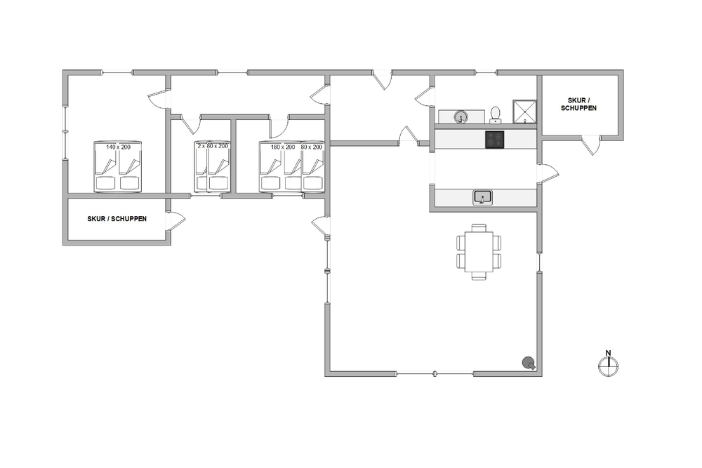 Das Ferienhaus in der Lærkealle 9 verfügt über mehrere Terrassen, sodass ihr bei schönem Wetter viele Möglichkeiten habt, draußen zu sitzen. Eine der Terrassen ist nach Osten ausgerichtet und ist daher ideal für die Morgen- und Nachmittagssonne, bei der sich ein Sonnenbad anbietet. Die andere Terrasse ist nach Westen ausgerichtet, und wenn das Wetter es zulässt, ist dies der perfekte Ort, um den Grill anzuschmeißen, draußen zu sitzen und ein gutes Buch zu lesen und das ein oder andere Glas Wein zu trinken.