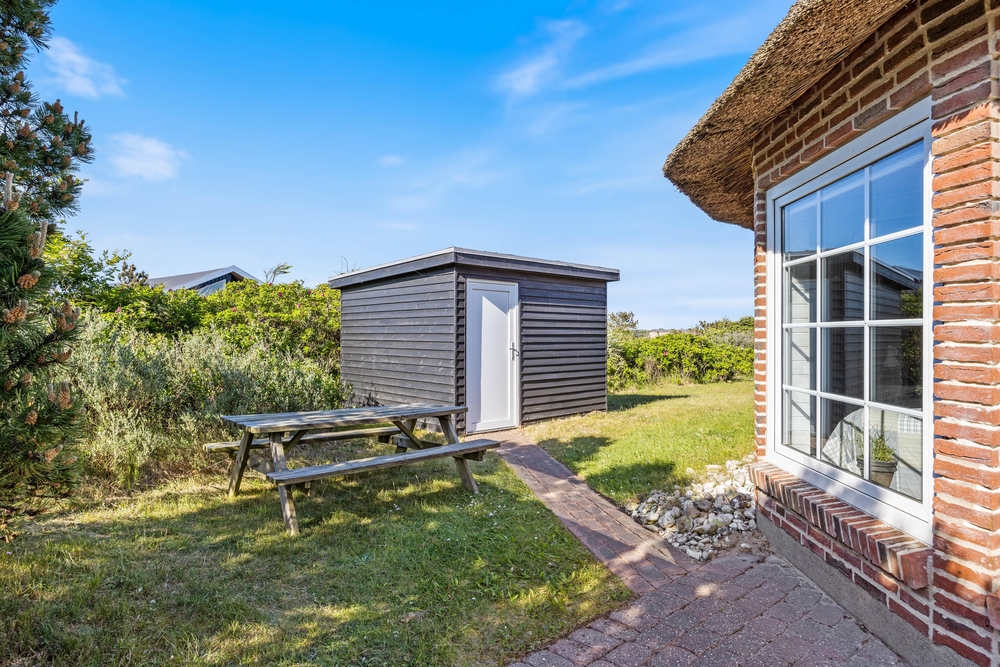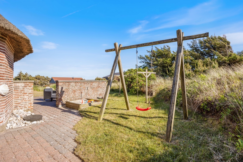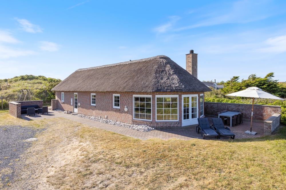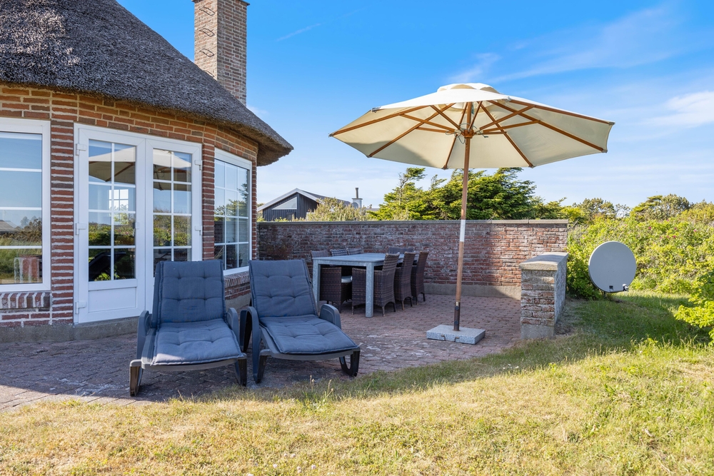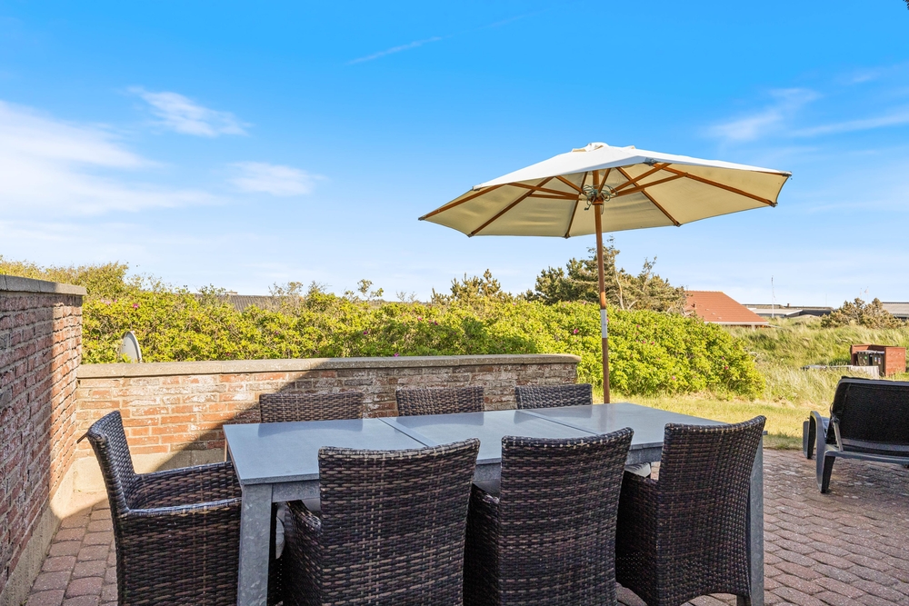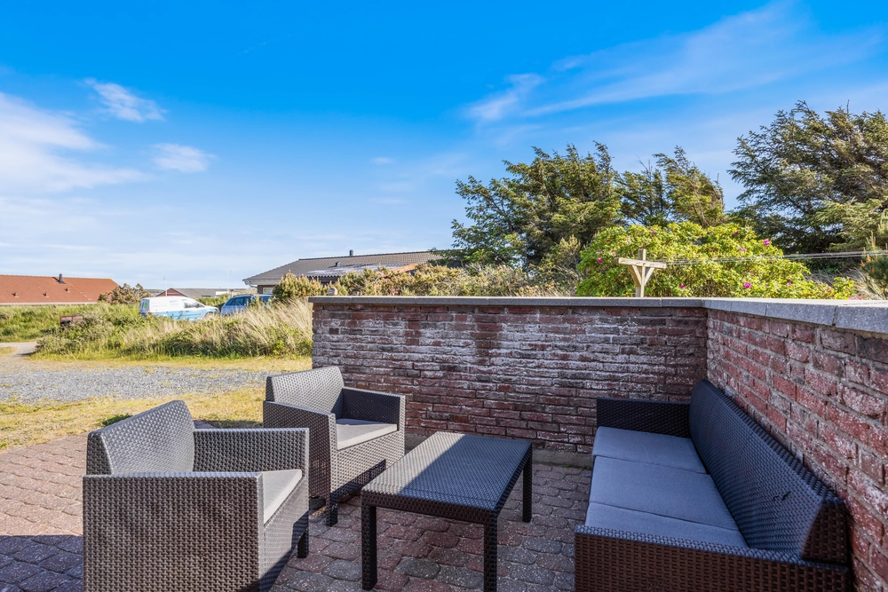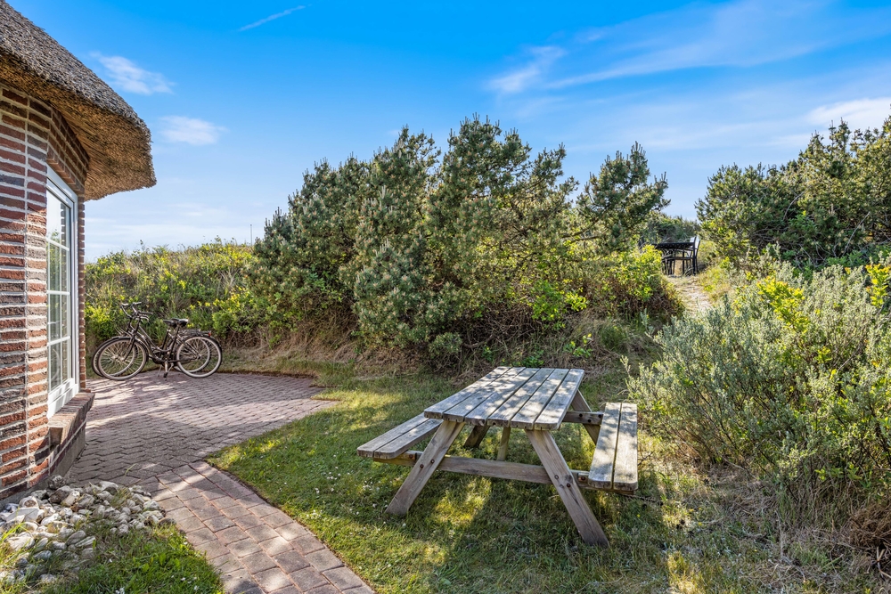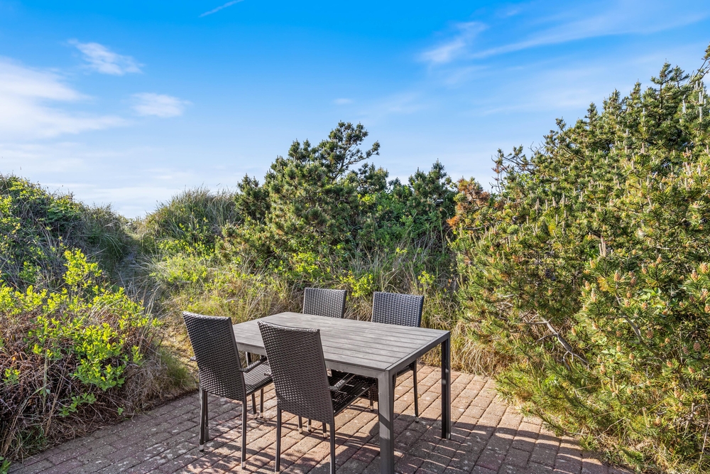 Vom Wohnzimmer aus habt ihr direkten Zugang zu einer schönen Terrasse, die Ruhe und Frieden bietet. Das Ferienhaus liegt am Ende einer ruhigen Sackgasse, sodass es überhaupt keinen Verkehr gibt. Darüber hinaus gibt es 3 Terrassenflächen im Osten, Süden und Westen. So habt ihr die Möglichkeit, euch ein gemütliches Plätzchen zu suchen, egal ob ihr Sonne, Schutz oder Schatten sucht. Hinter dem Haus findet ihr ein erhöhtes, gemütliches Plätzchen, das durch eine Düne gut abgeschirmt ist.