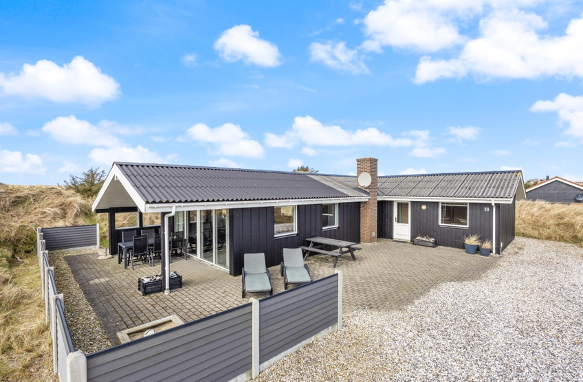 Das Ferienhaus steht auf einem Naturgrundstück inmitten der schönen Dünenlandschaft von Dänemarks Westküste. Hier könnt ihr am Morgen den ersten Kaffee beim Sonnenaufgang genießen und entspannen. Es stehen euch Gartenmöbel zur Verfügung, auf denen ihr es euch bequem machen könnt. Am Abend, wenn eure Köstlichkeiten auf dem Grill brutzeln, lehnt euch zurück und lauscht dem Meeresrauschen. Sollte das Wetter einmal umschlagen ist das kein Problem, da ein Teil der Terrasse überdacht ist. Seitlich vom Ferienhaus führt eine kleine Treppe auf die Düne, wo ihr einen schönen Rundumblick habt.