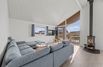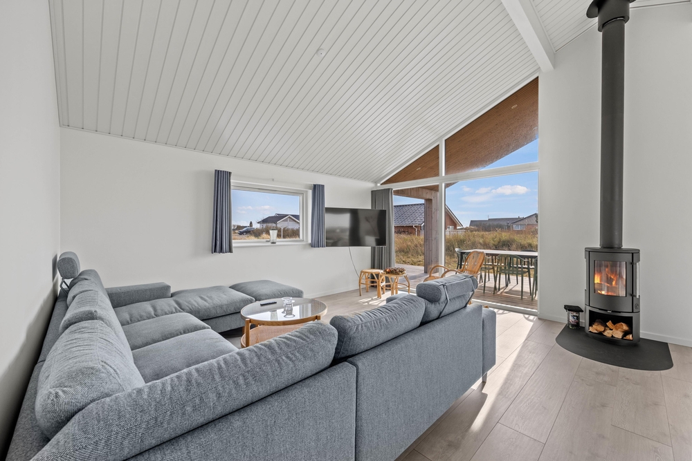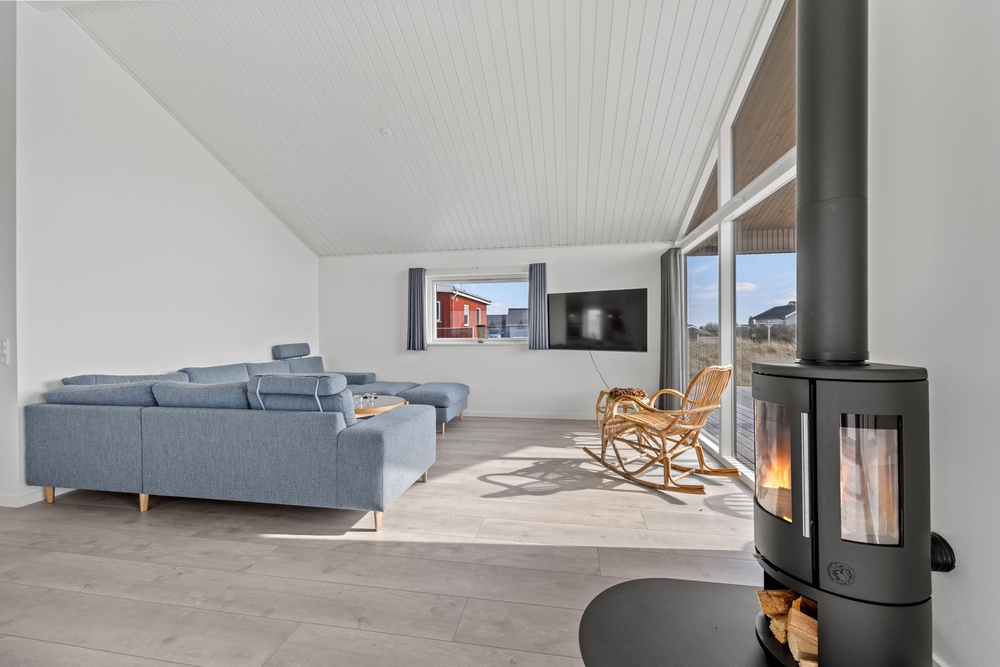 Der gesamte Innenbereich überzeugt mit seinen großen Fensterpartien, die für viel Tageslicht sorgen und einen sehr schönen Blick ins Grüne ermöglichen. Die offene Gestaltung der Räumlichkeiten schafft viel Platz für gemeinsame Zeit mit der Familie und Freunden. Ausgelassene Konversationen können im großen Wohnbereich, während die einen in der Küche das Essen zubereiten und die anderen im gemütlichen Sofa entspannen, geführt werden. Das Kaminfeuer und Geknister ist das i-Tüpfelchen und schafft noch mehr Gemütlichkeit und Urlaubsstimmung. Eine energiesparende Wärmepumpe ist ebenfalls vorhanden.
