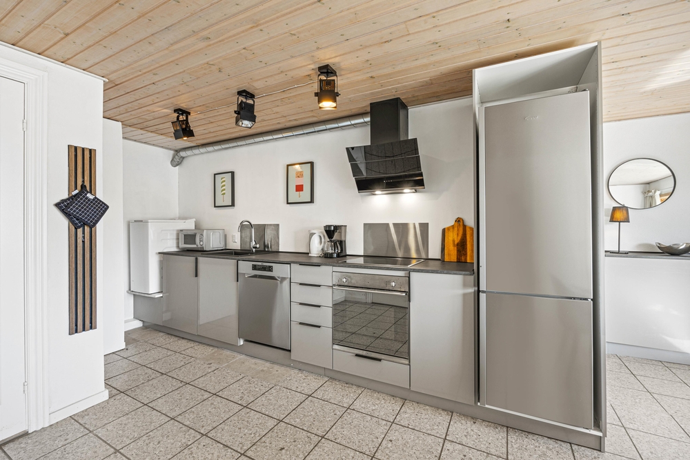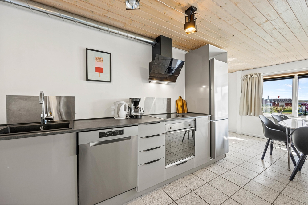 Eine der besten Eigenschaften dieses Ferienhauses in Lakolk 166 ist die durchdachte Ausstattung, die euren Aufenthalt entspannt macht. Der gemütliche Kaminofen lädt euch ein, entspannte Stunden im Wohnzimmer zu verbringen, während die Spülmaschine in der gut ausgestatteten Küche für Bequemlichkeit sorgt.