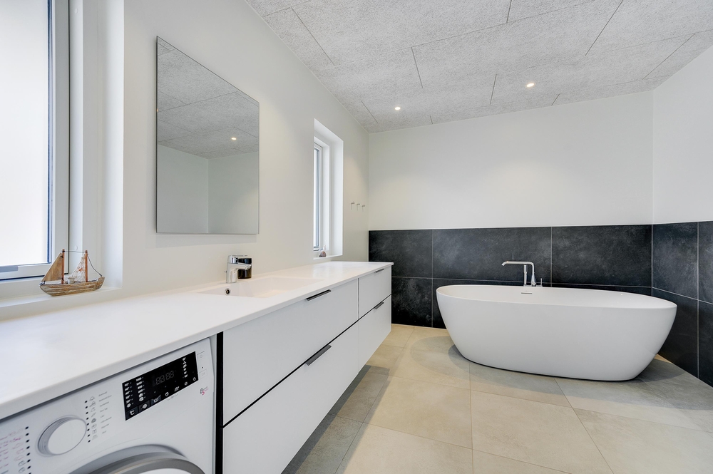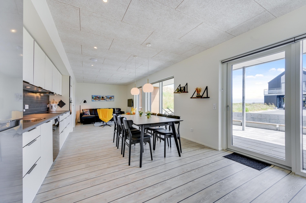 Durch den Flur hindurch kommt ihr zu dem hellen Wohn- und Essbereich mit offener Küche an dem sich die breite Terrasse anschließt. Im Wohnzimmer könnt ihr es euch nach einem langen Spaziergang am Fjord auf dem Sofa vor dem Flachbildfernseher bequem machen und die Fußbodenheizung sorgt für eine Wohlfühltemperatur. Bitte beachtet, dass die Auswahl an deutschen Fernsehprogrammen beschränkt ist.