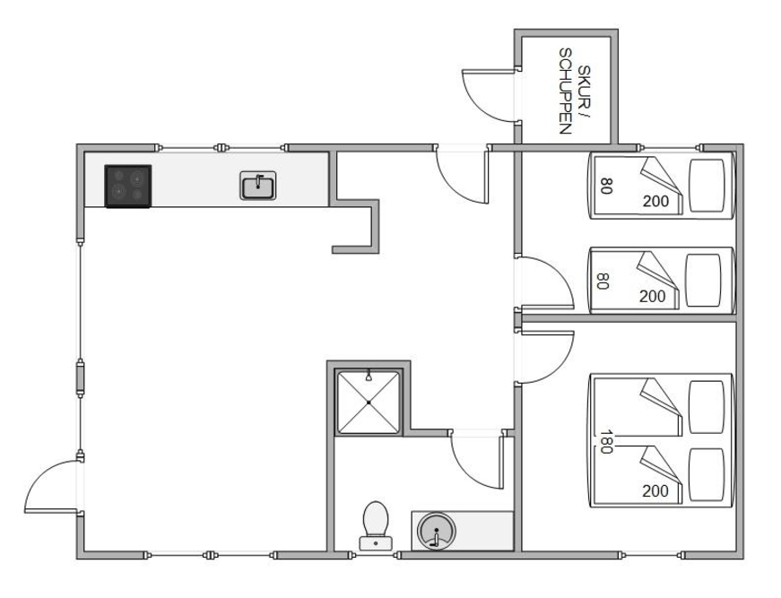 Die offene Wohnküche des Ferienhauses ist praktisch mit Geschirrspülmaschine und Induktionsherd ausgestattet und lädt euch zum Ausprobieren neuer Rezepte ein. Danach könnt ihr es euch in der Sofaecke bequem machen und bei einem spannenden Film den Ferientag ausklingen lassen. Besonders angenehm ist im Wohnbereich die Fußbodenheizung.