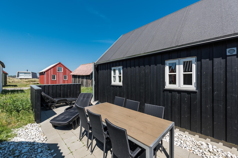 Zu dem kleinen Ferienhaus in Hvide Sande gibt es natürlich auch eine schöne kleine Terrasse. Hier kannst du den Sommer, das gute Wetter dazu und die charmante Umgebung richtig genießen. Gartenmöbel und ein Grill gehören zur Grundausstattung dazu- perfekt wenn du also einen gemütlichen Grillabend mit der Familie oder den Freunden geplant hast.