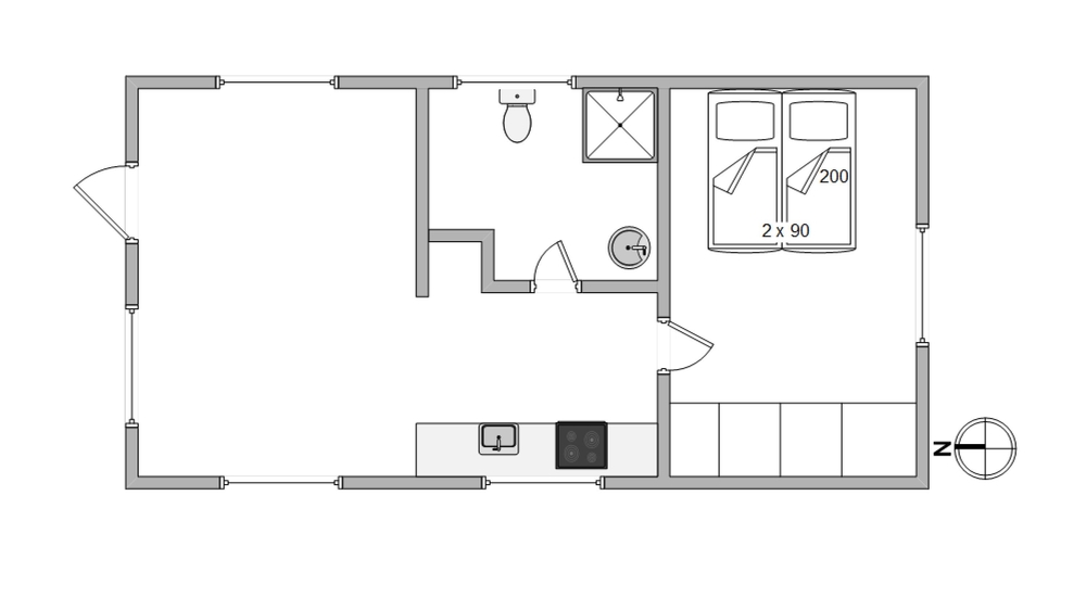 In dem Wohnzimmer gibt es einen Flachbildschirm, Chromecast und gratis WLAN- Anschluss gibt es im Haus auch. Die vier Schlafplätze verteilen sich auf ein Doppelzimmer und ein Hängeboden mit zwei Matrazen.