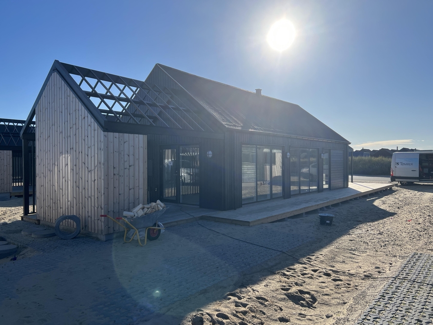 Das äußere Erscheinungsbild des Hauses verbindet moderne Architektur mit natürlichen Holzelementen, was dem Gebäude eine einladende, warme Atmosphäre verleiht. Der kleine, gepflegte Garten rund um das Haus bietet genügend Platz zum Toben für Kinder und Hund oder für ruhige Nachmittage auf der Sonnenliege. Besonders praktisch ist der Ladeanschluss für E-Autos, der sich direkt am Ferienhaus befindet und euch erlaubt, euer Fahrzeug mühelos vor Ort aufzuladen.